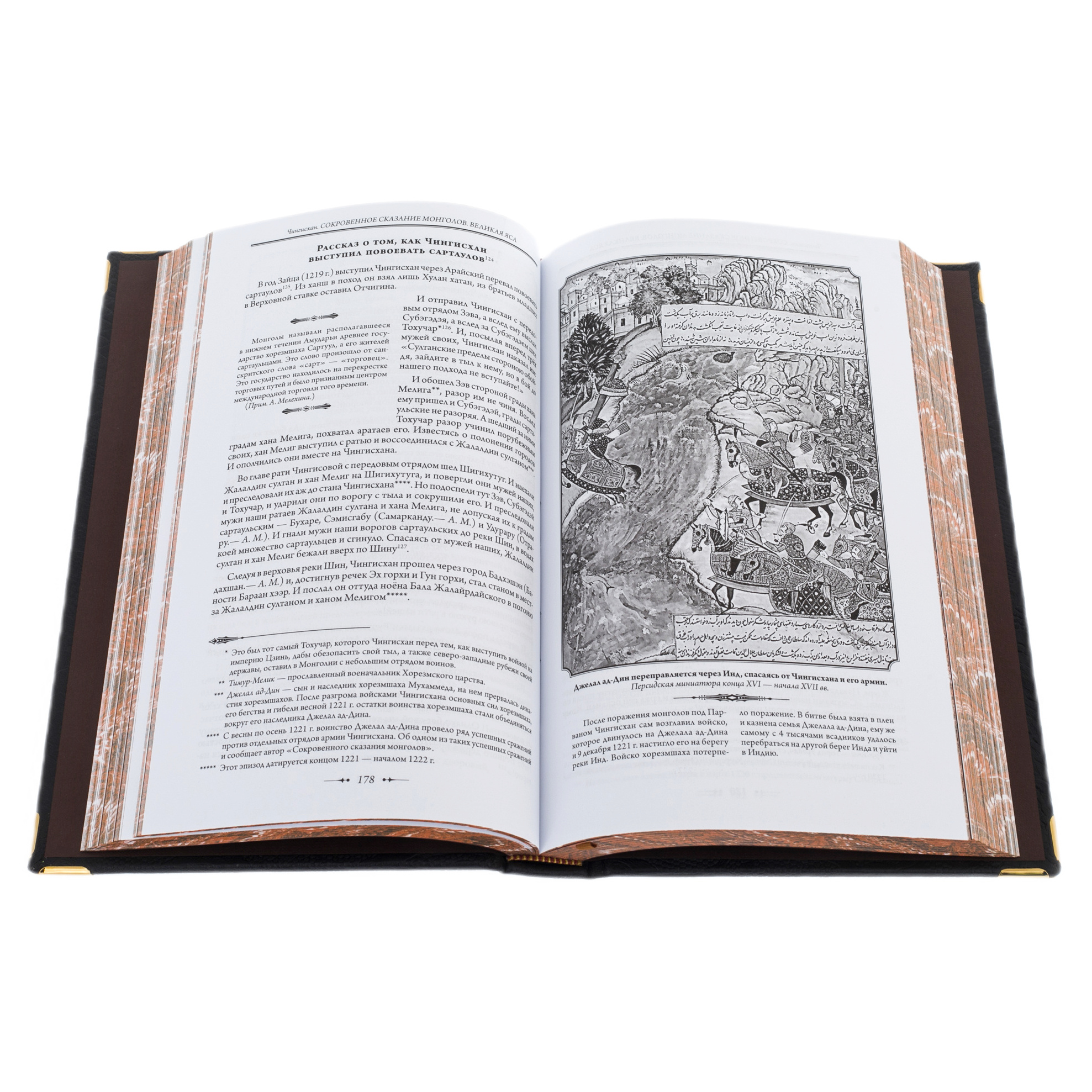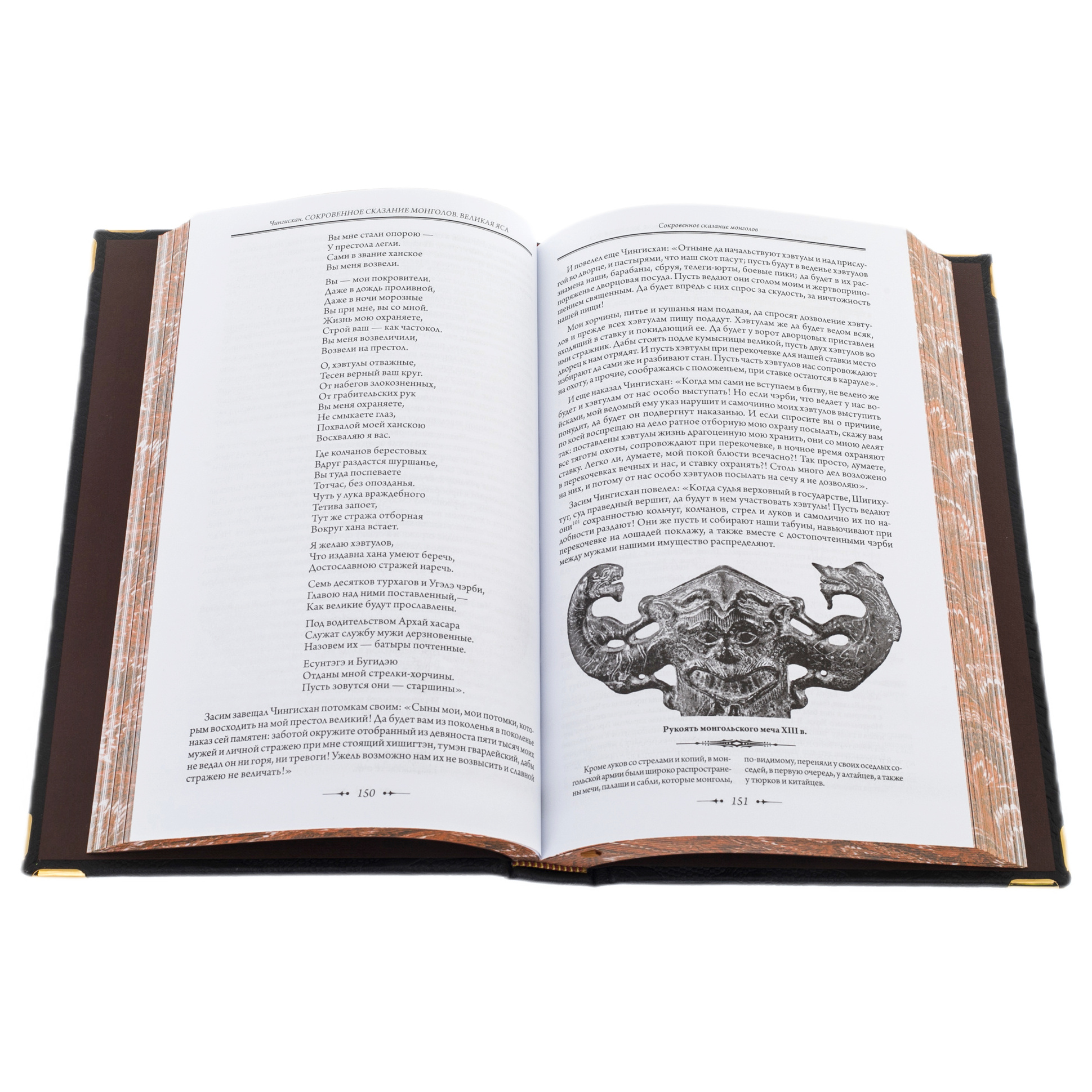 Книга в кожаном переплете "Чингисхан. Сокровенное сказание" в коробе
