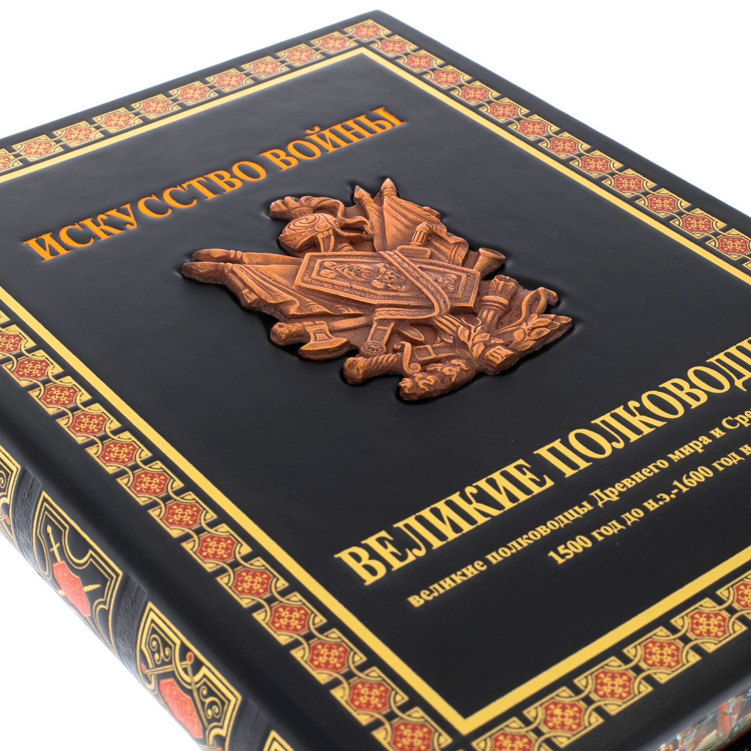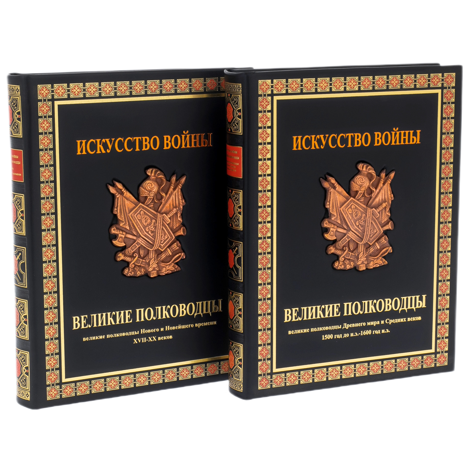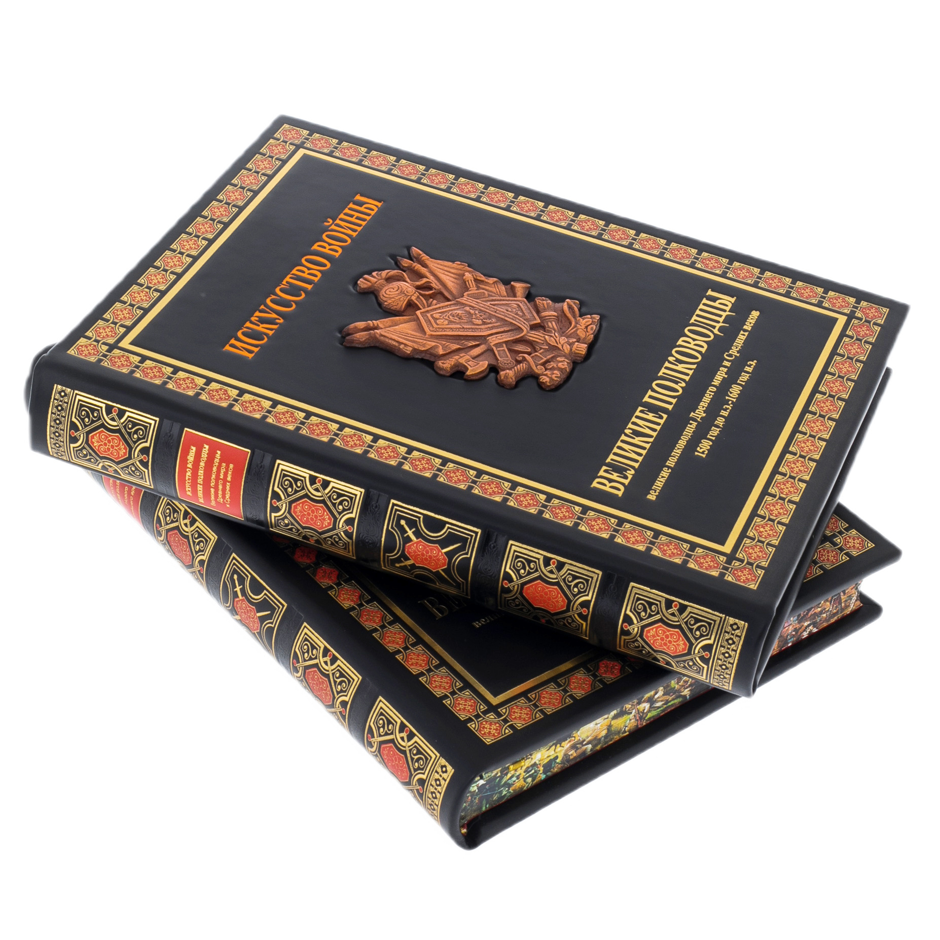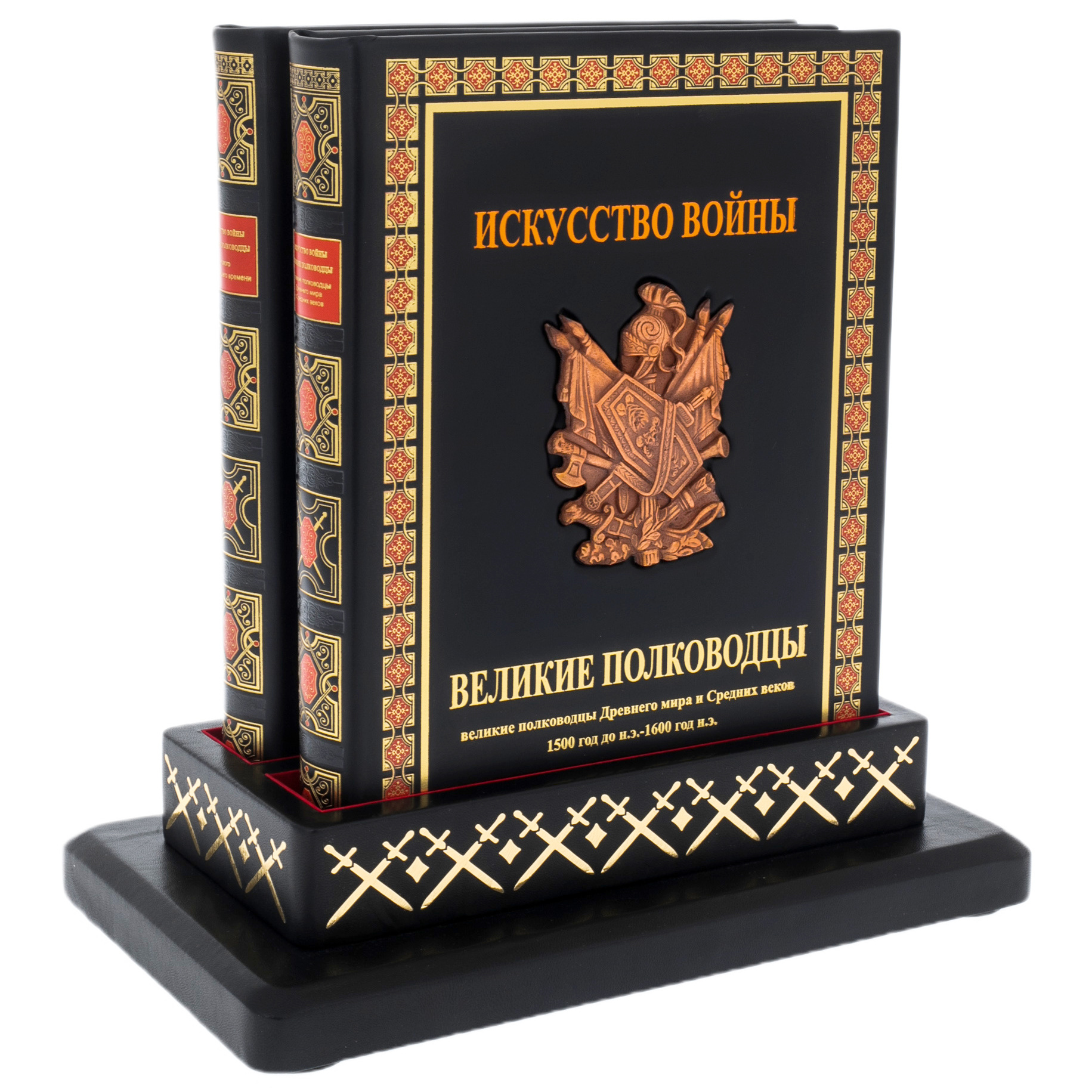 Книга в кожаном переплёте "Искусство войны. Великие полководцы" 2 тома на подставке