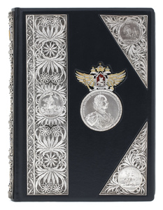 Переплет из кожи с богатой иллюстрацией на обложке, выполненной в насыщенных тёплых тонах, отражает дух времени — когда сила и величие правителя определяли судьбы целых народов. Золочёные уголки книги подчёркивают её статус роскошного подарочного издания, предназначенного для тех, кто ценит не только историю, но и внешнюю эстетику.