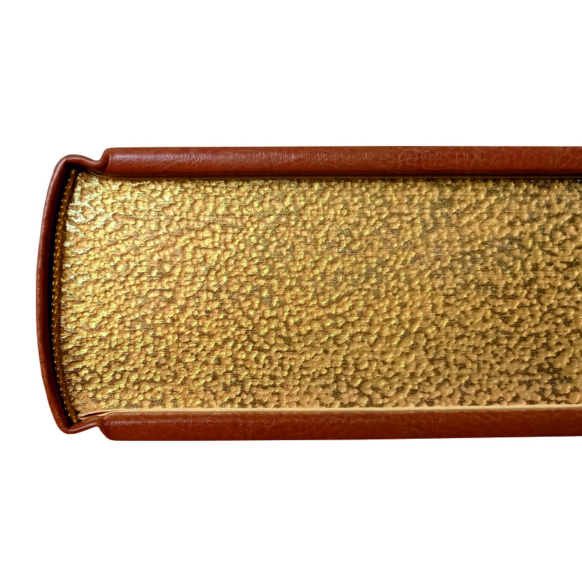 Исполнение: Переплет ручной работы. Переплетная кожа. Каптал из шелковых нитей. Ляссе шелковое. Обрез торшонированный золотой фольгой. Украшение переплета: блинтовое тиснение, тиснение полиграфической фольгой.