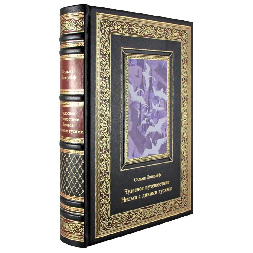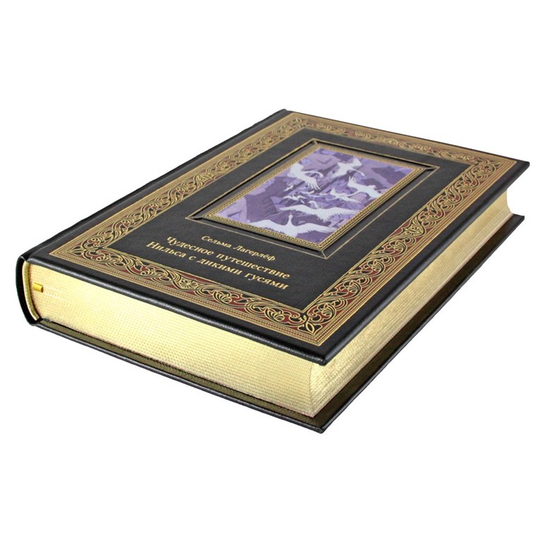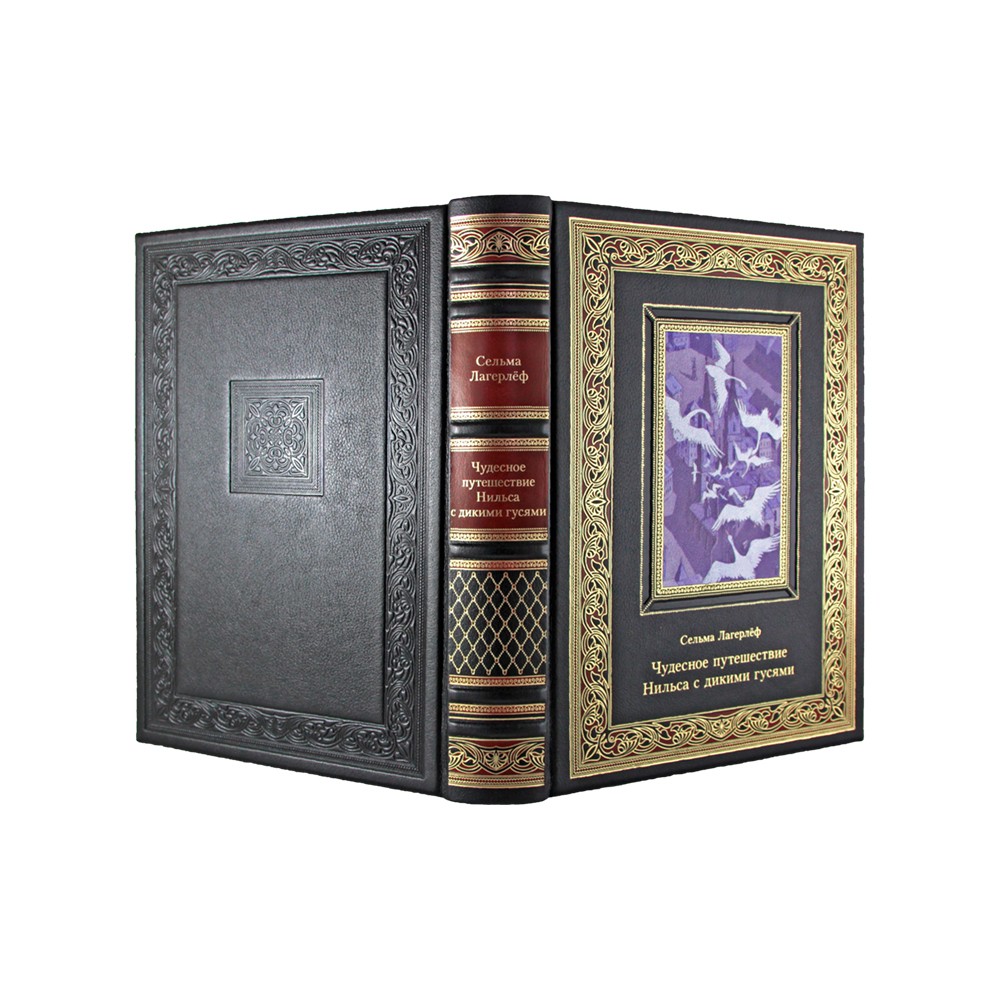 Книга в кожаном переплете "Чудесное путешествие Нильса с дикими гусями" Сельма Лагерлёф