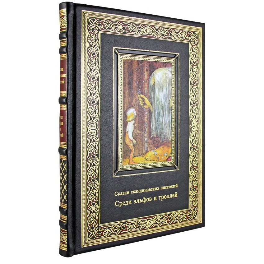 Книга в кожаном переплете БМЛ "Среди эльфов и троллей. Сказки скандинавских писателей."