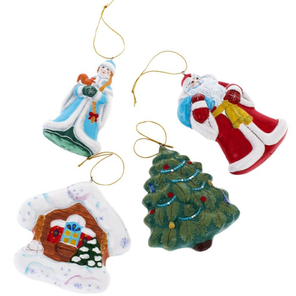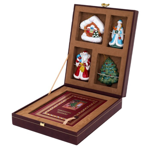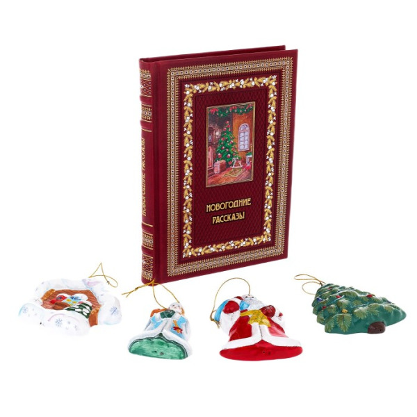 Подарочный набор "Новогодние рассказы" с книгой и майоликой 4-е игрушки