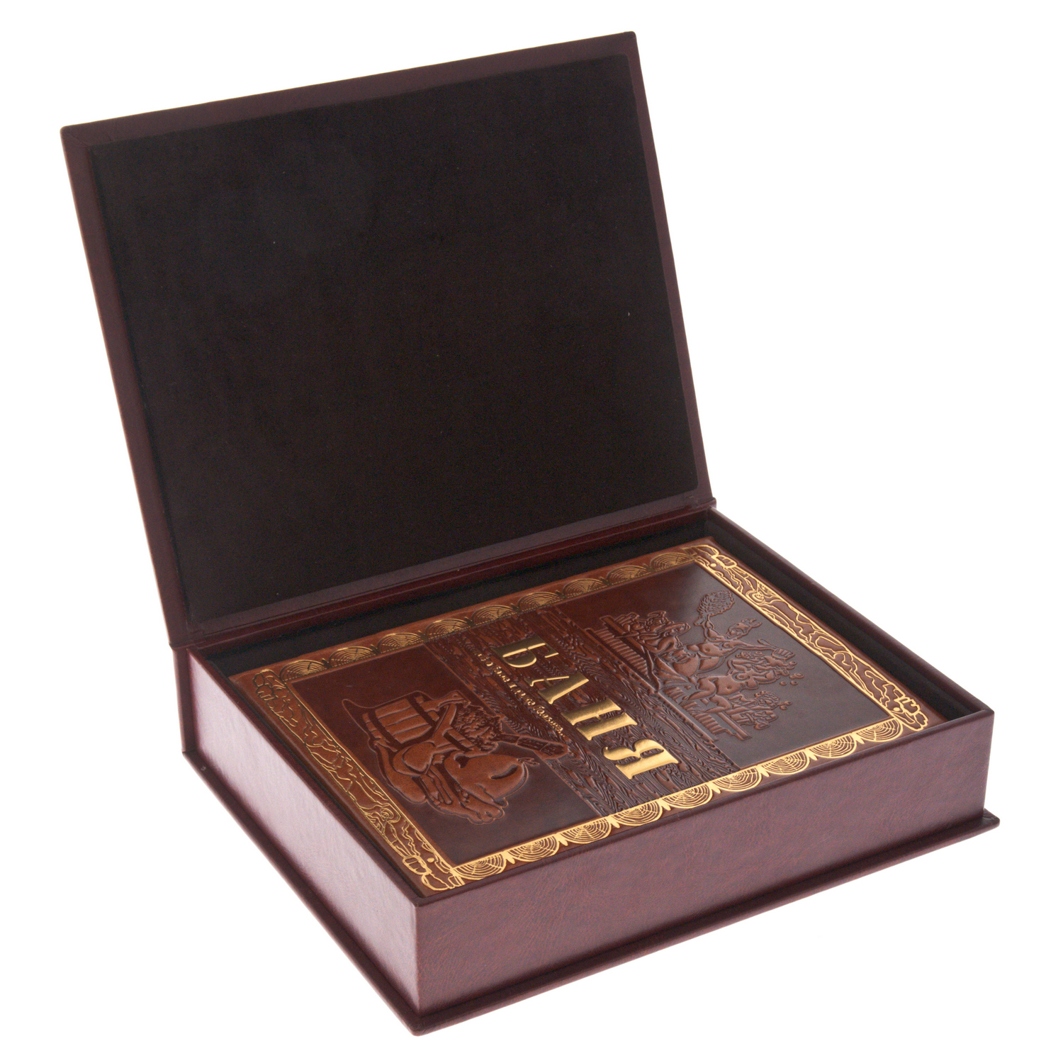 Исполнение:кожаный переплет, ручная работа, золотое, блинтовое тиснение, форзац из дизайнерской бумаги, цветная печать, торшонированный золотой обрез блока, ляссе.