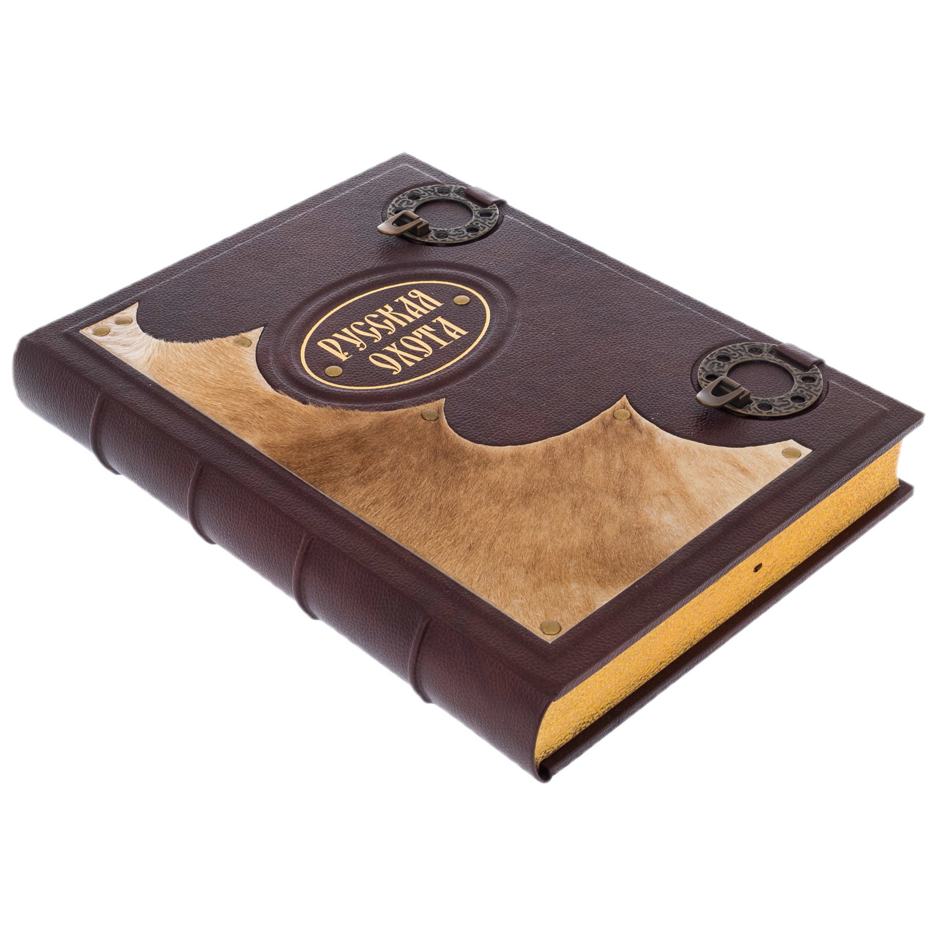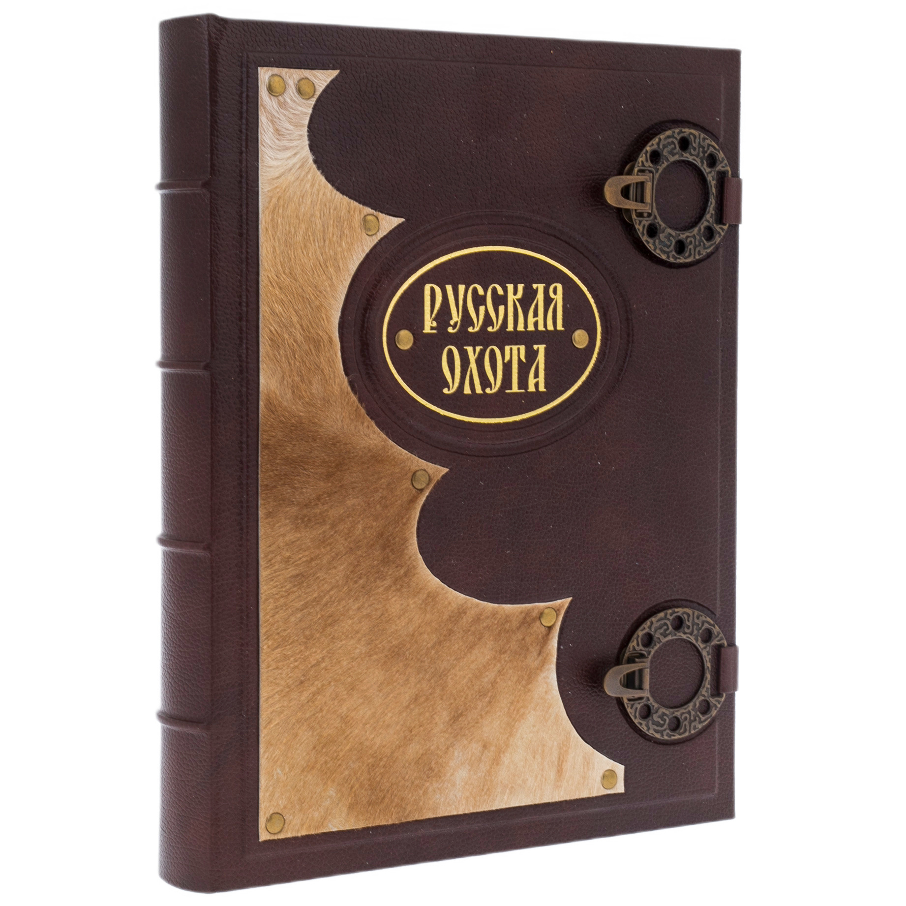 Книга в кожаном переплете "Русская охота" на застежках, эксклюзив