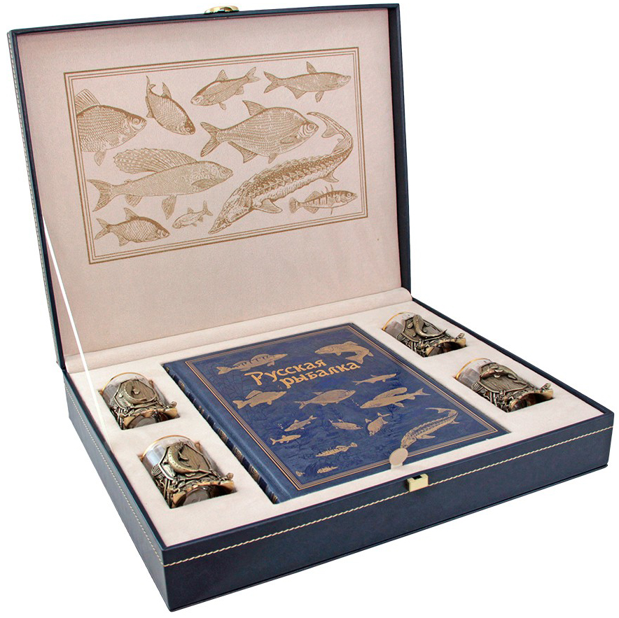 Подарочный набор с книгой и стопками "Рыбацкий" на 4 персоны