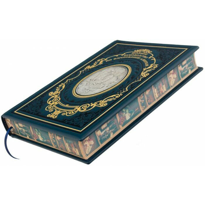 Особенности оформления:в эксклюзивном переплете из натуральной кожи с литыми накладками, переплет декорирован накладками (уголки, замочки) из металла с серебрением, изготовленными в технологии художественное литье, обрез блока полированный, окрашенный вручную, цвет "серебро", форзац из дизайнерского картона, ляссе тканая тесьма.