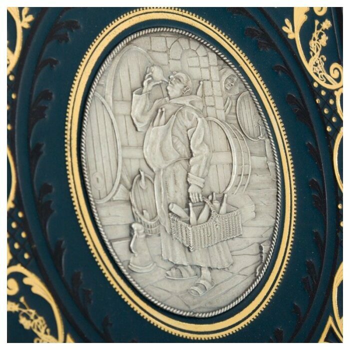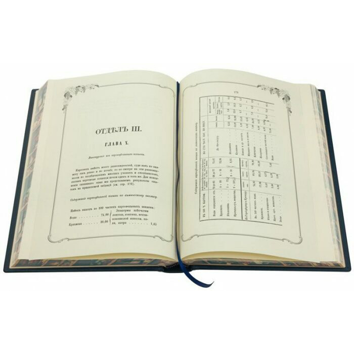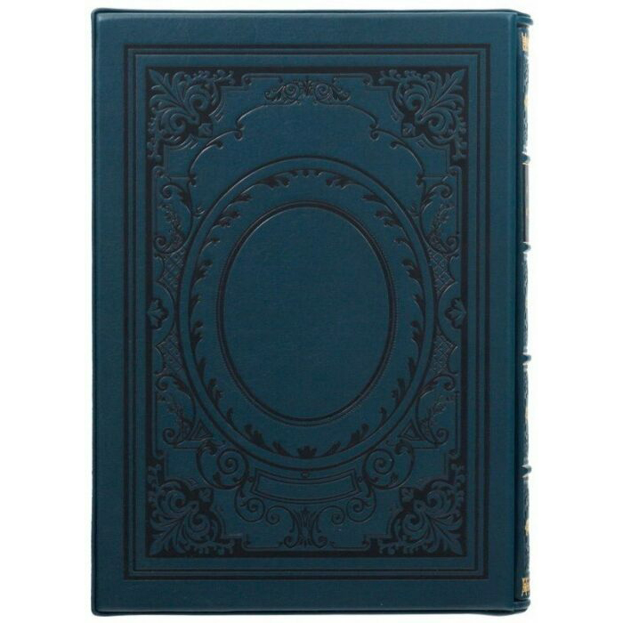 Особенности оформления:переплет книги изготовлен из натуральной кожи цвета «Маренго», рельефные узоры на коже и тиснение выполнены вручную с использованием классических и авторских техник и инструментов, переплет декорирован накладками (уголки, замочки) из металла с серебрением, изготовленными в технологии художественное литье.