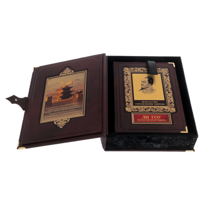 Книга в кожаном переплете "Искусство управления миром. Ли Гоу. Искусство властвовать" в коробе