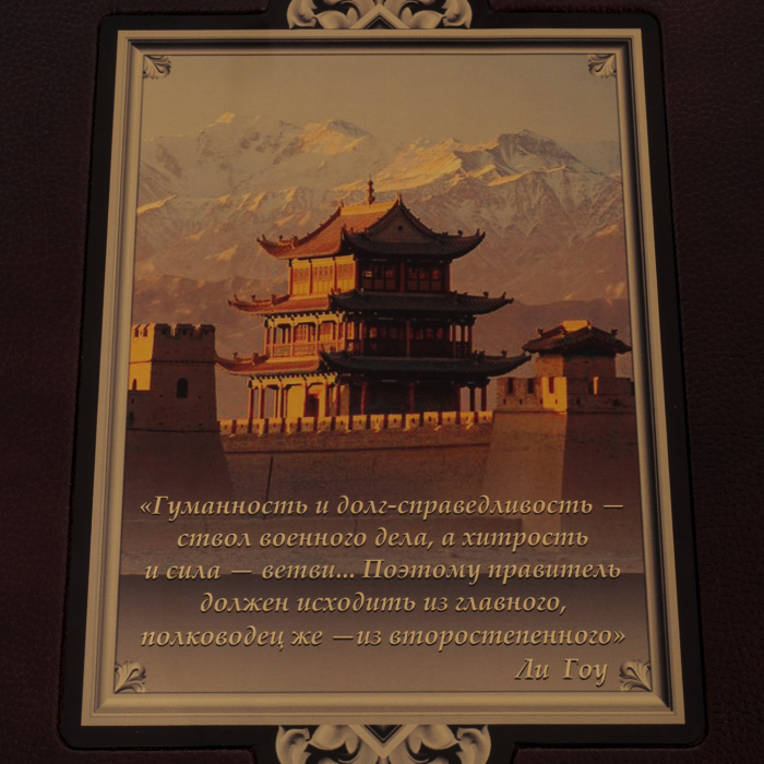 Книга в кожаном переплете "Книга мудрости Правителя государства"Книга в кожаном переплете "Книга мудрости Правителя государства"Книга - напутствие Правителю государства о мудрости управления в афоризмах, изречениях, поэтических строфах, правилах и наставлениях, авторами которых являются известные люди: Марк Аврелий, Уинстон Черчилль, Конфуций, Махатма Ганди, Екатерина II, Джордж Вашингтон, Отто фон Бисмарк, Ицхак Рабин, Никколо Макиавелли, Альфред Нобель, Юлий Цезарь, Мустафа Ататюрк, Мартин Кинг, Наполеон, Аврелий Августин, Тиру-Валлювар, Петр I, Авраам Линкольн, Шарль де Голль, Фридрих II, Бенджамин Франклин, Маргарет Тэтчер, Людовик XIV, Александр Македонский и многие, многие другие.