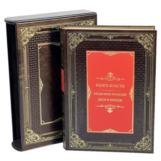 Книга в кожаном переплете "Книга власти. Бенджамин Франклин и Джон Ф.Кеннеди" в футляре