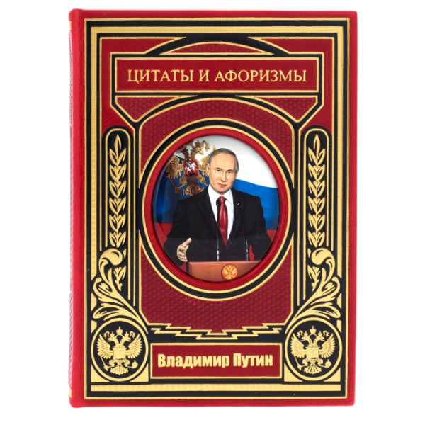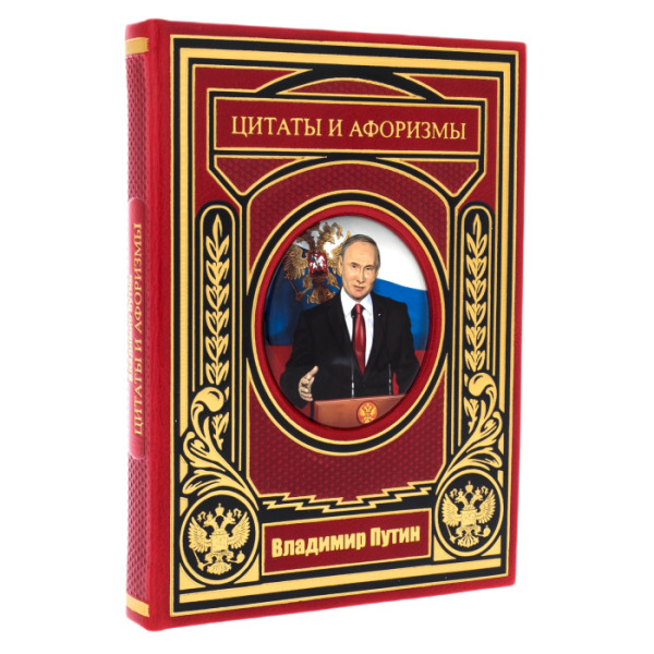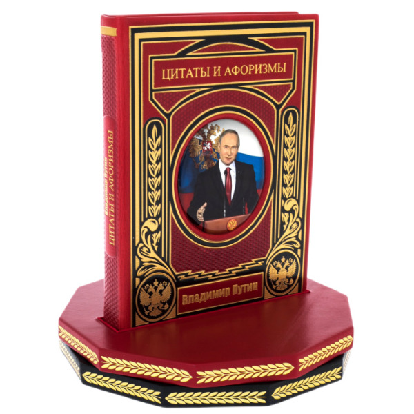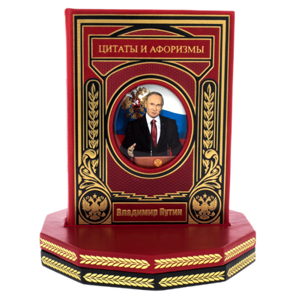 Книга в кожаном переплете "Путин. Цитаты и афоризмы" на вращающейся платформе