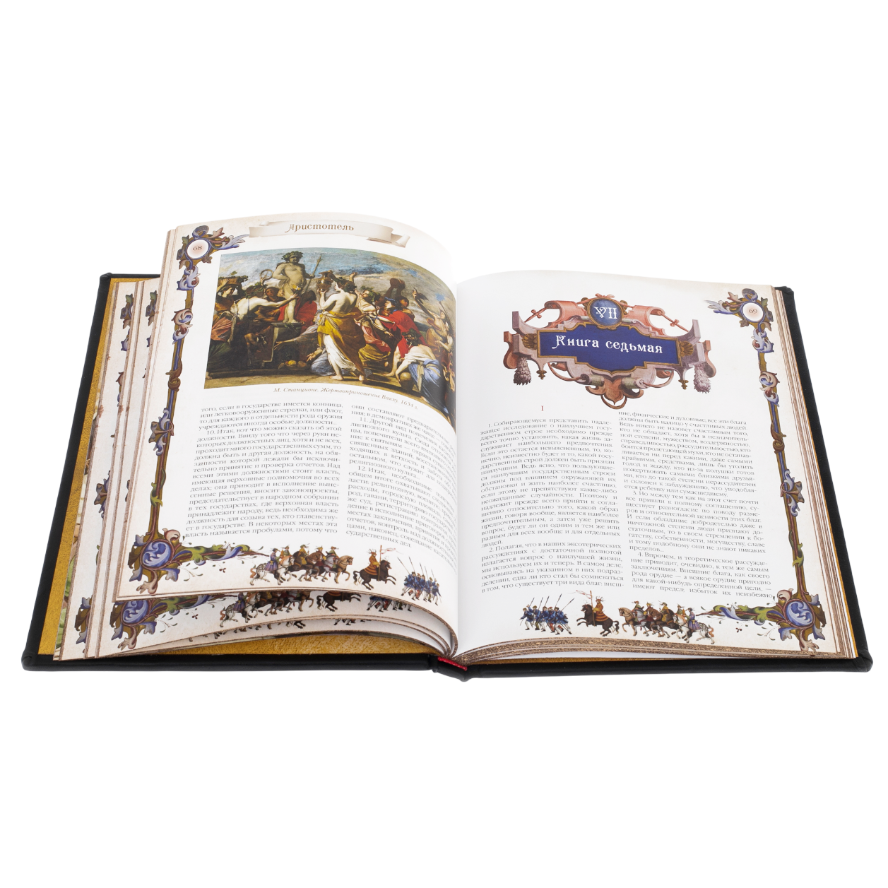 Книга «Большая книга власти» в малом формате — это интеллектуальный артефакт, заключённый в роскошную оправу. Издание представляет собой собрание выдающихся размышлений о природе власти, её истоках, проявлениях и законах, изложенных через призму философии, истории, политологии и этики. Внутреннее оформление выполнено в стиле старинных манускриптов: каждая страница украшена орнаментальными рамками, миниатюрами, репродукциями исторических картин и гравюр. Такой подход превращает чтение в эстетическое переживание, наполняя каждый абзац весомой визуальной опорой.