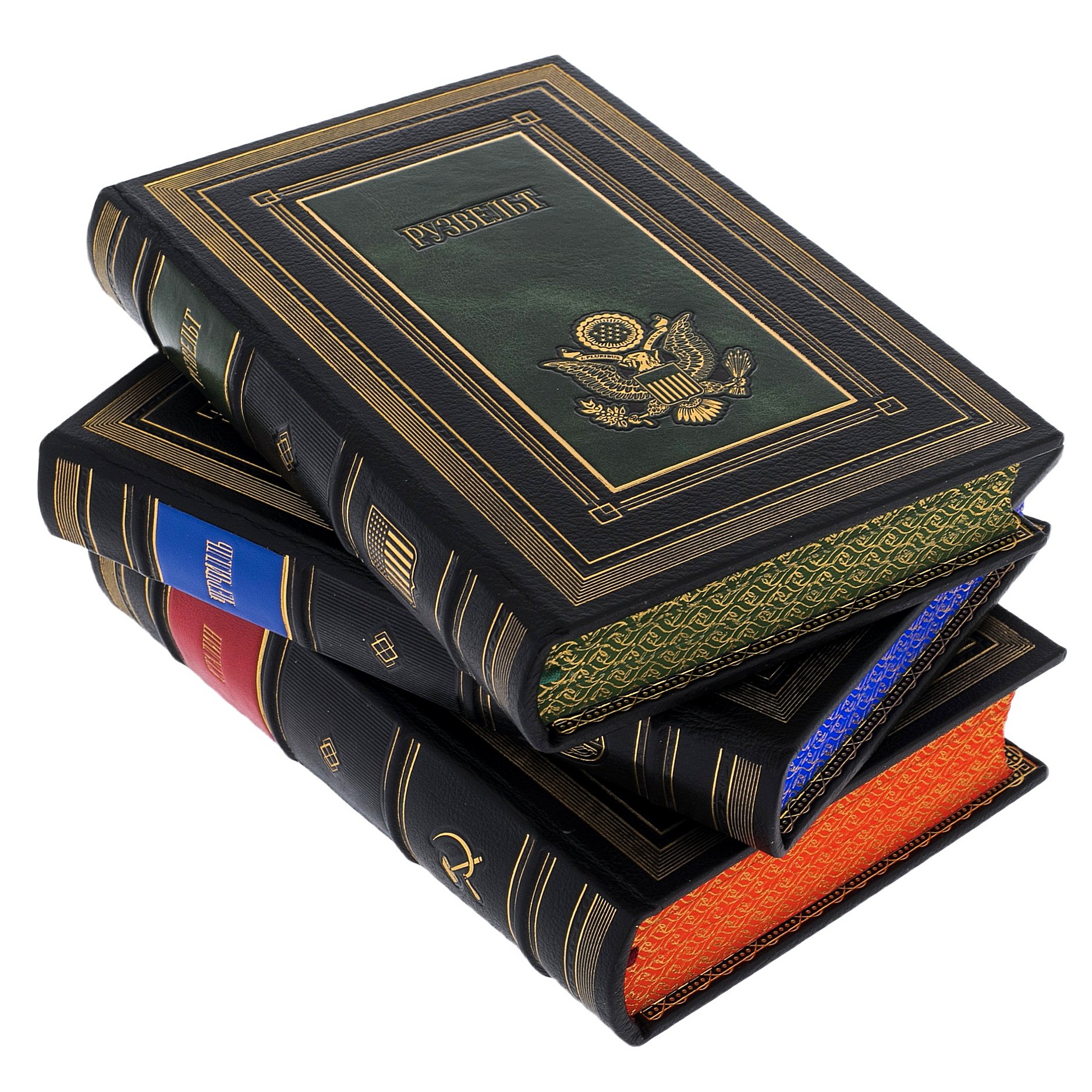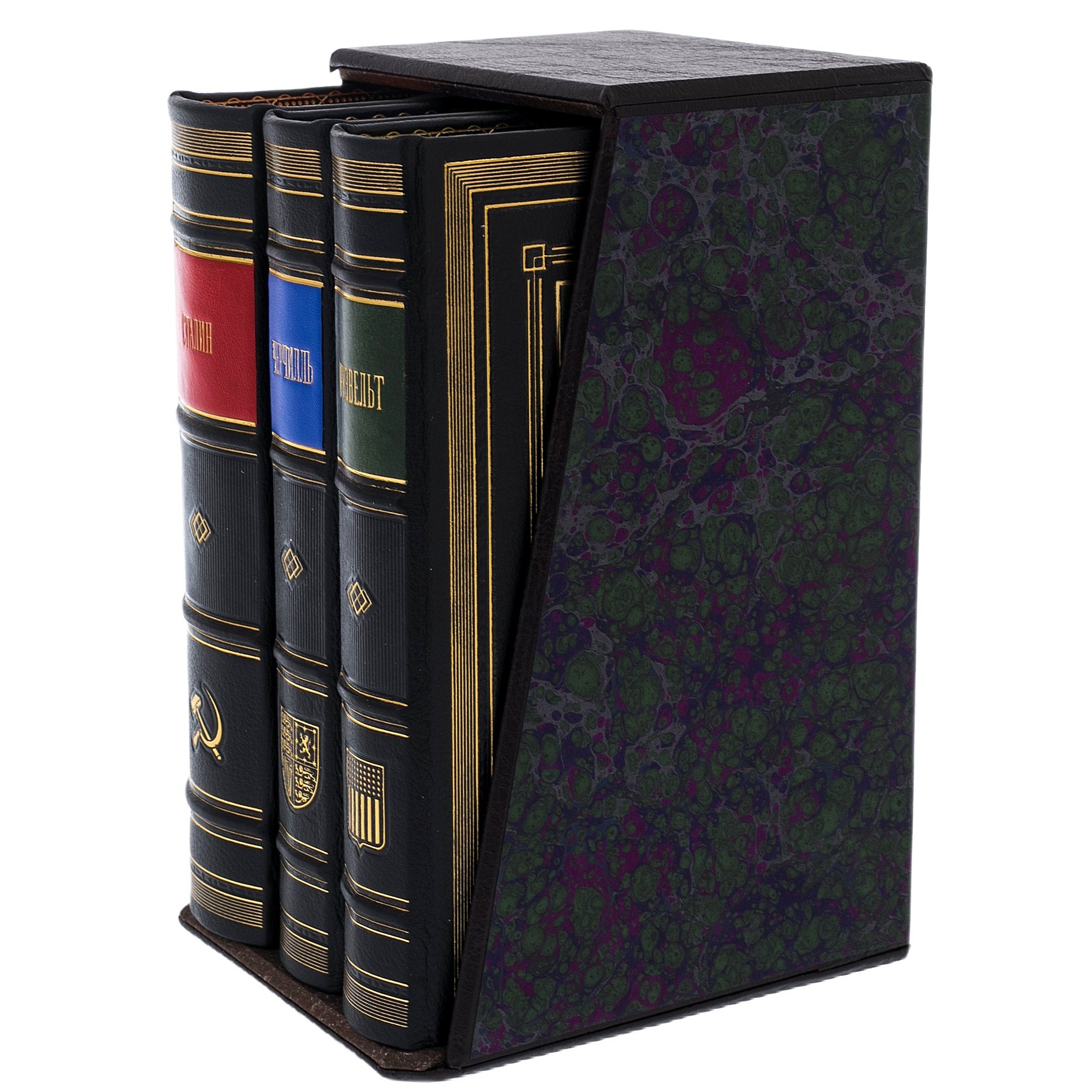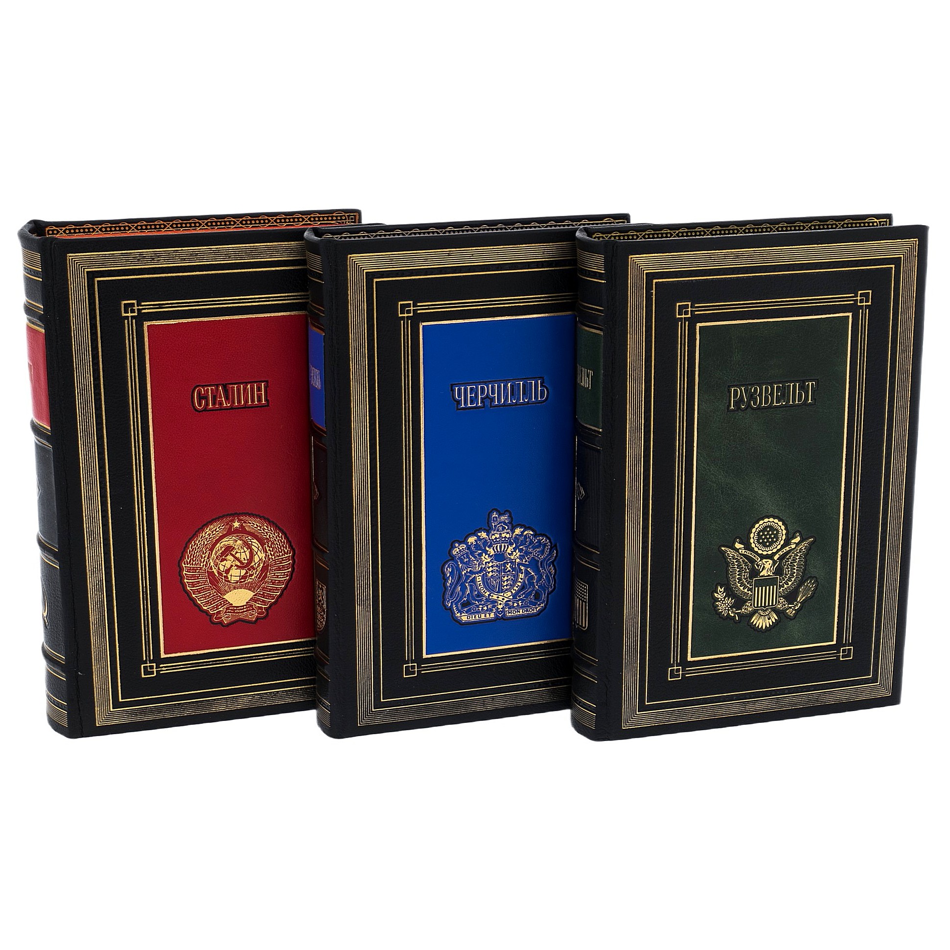 Подарочный набор книг в кожаном переплете"Сталин. Рузвельт. Черчилль" в 3-х томах