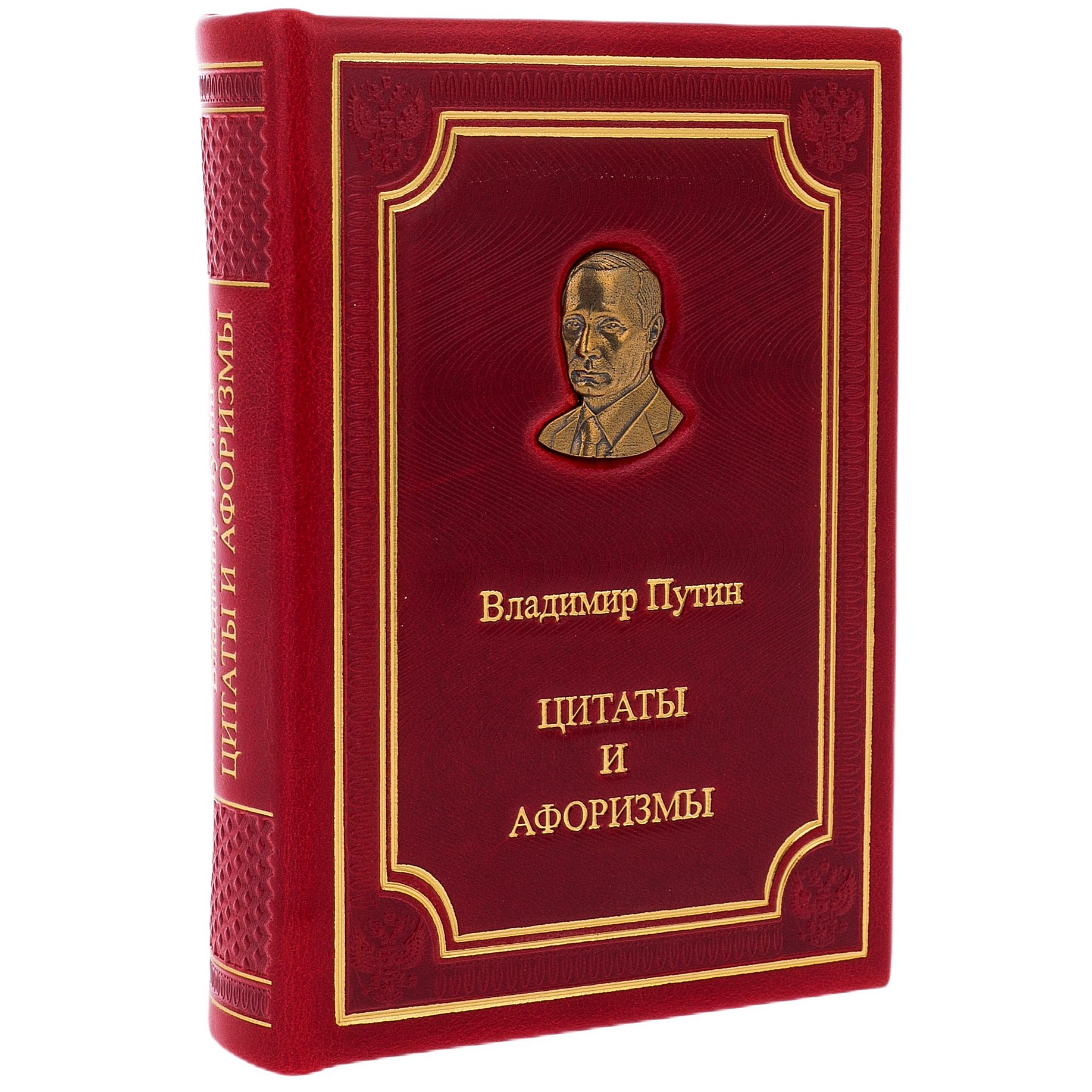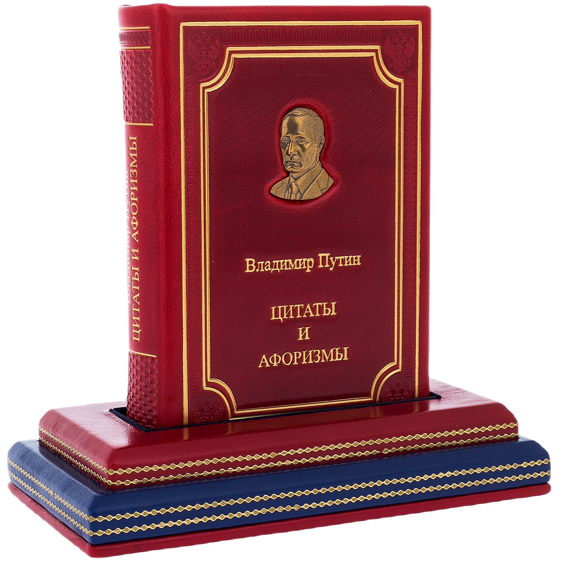 Книга в кожаном переплёте "Цитаты и афоризмы. Путин В.В." на подставке