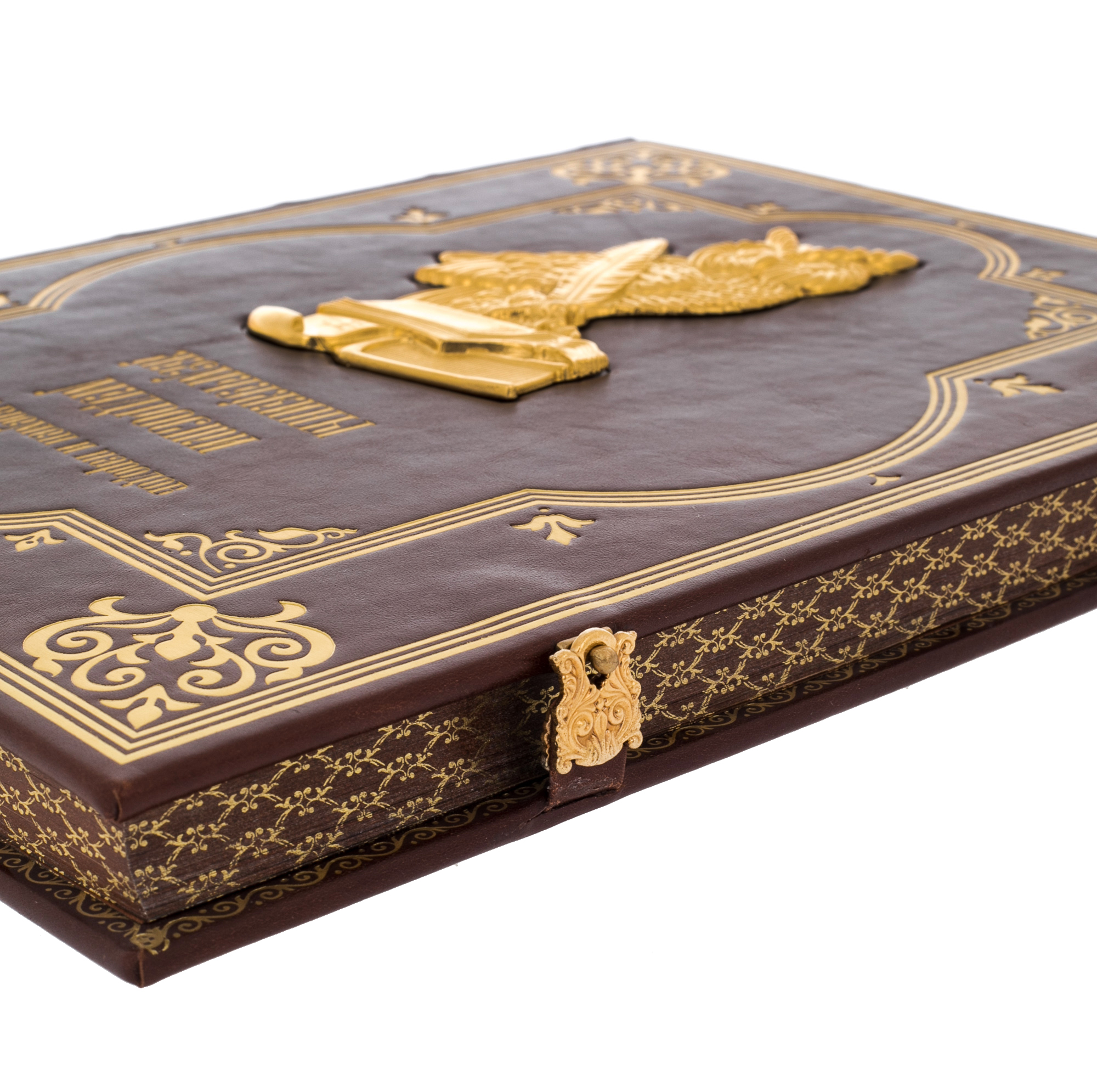 Материалы:кожаный переплет с золотым тиснением, латунь, золото 24 К.