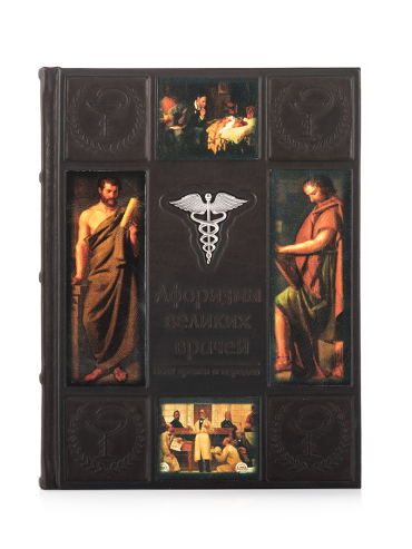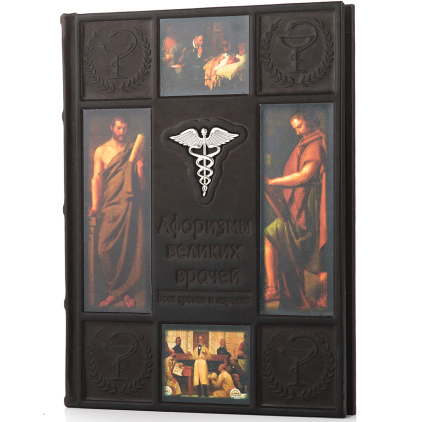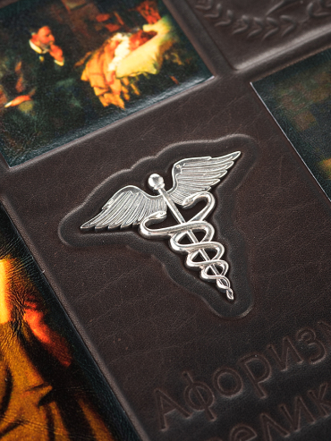 Подарочная книга в кожаном переплете "Афоризмы великих врачей" с серебряной накладкой