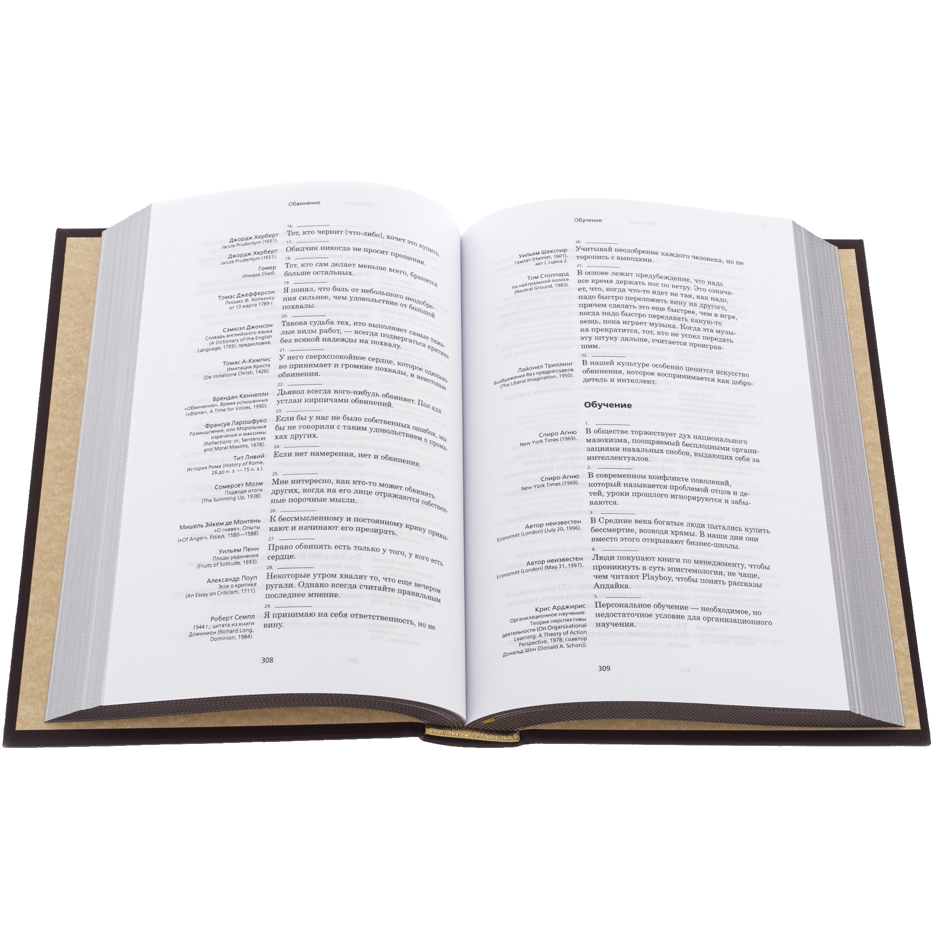 Книга в кожаном переплете "Книга мудрости Руководителя"Книга в кожаном переплете "Книга мудрости Руководителя"Книга - напутствие руководителю о мудрости управления в афоризмах, изречениях, поэтических строфах, правилах и наставлениях, авторами которых являются известные люди: Ингвар Кампрад, Адам Смит, Павел Нахимов, Луи Пастер, Соичиро Хонда, Генри Форд, Дмитрий Менделеев, Дейл Карнеги, Арманд Хаммер, Ли Якокка, Николай Вавилов, Джузеппе Феррари, Билл Гейтс, Малколм Форбс, Сергей Королев, Джон Рокфеллер, Коносуке Мацусита, Курт Карлсон и многие, многие другие.