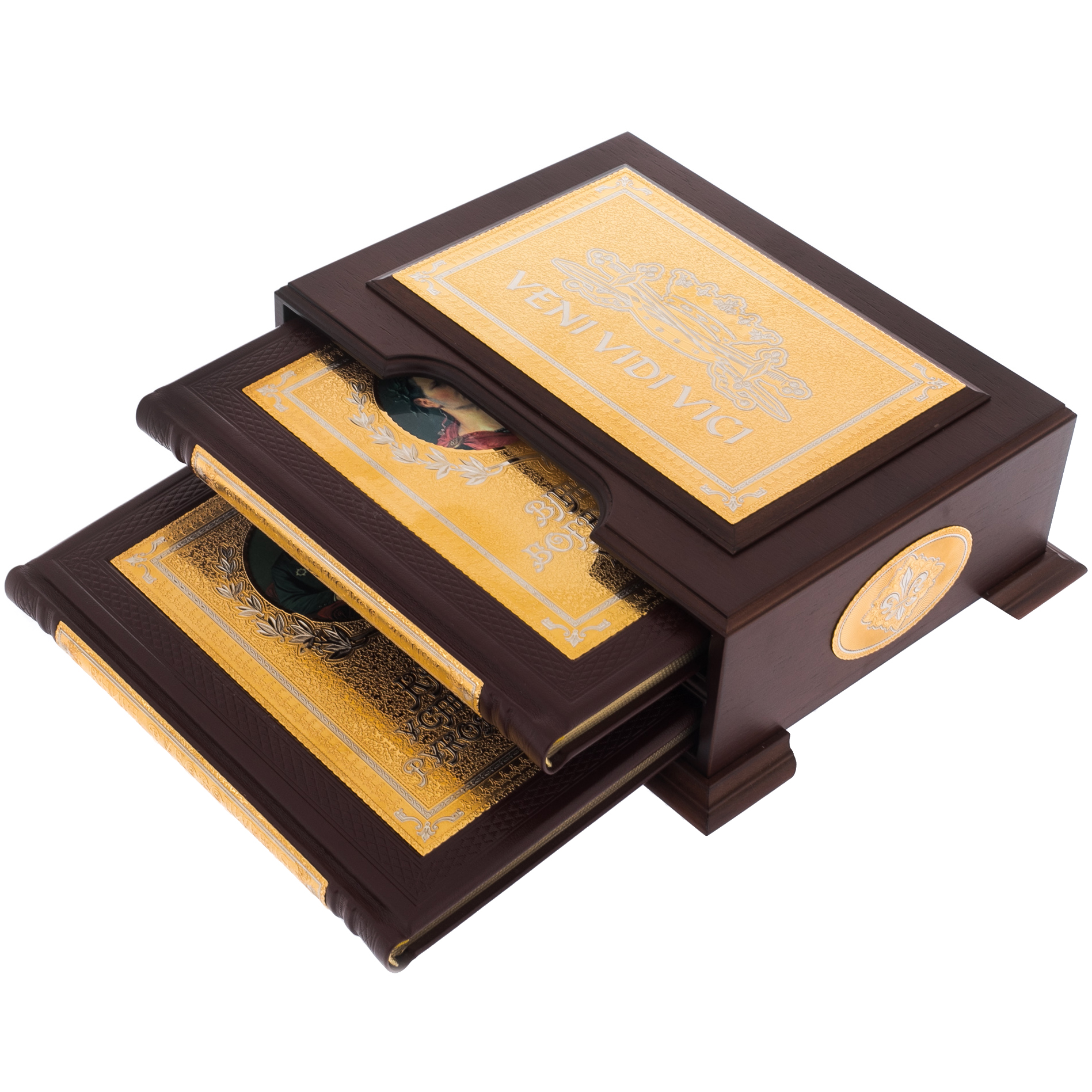 Исполнение:кожаный переплет ручной работы, трехсторонний золотой обрез.