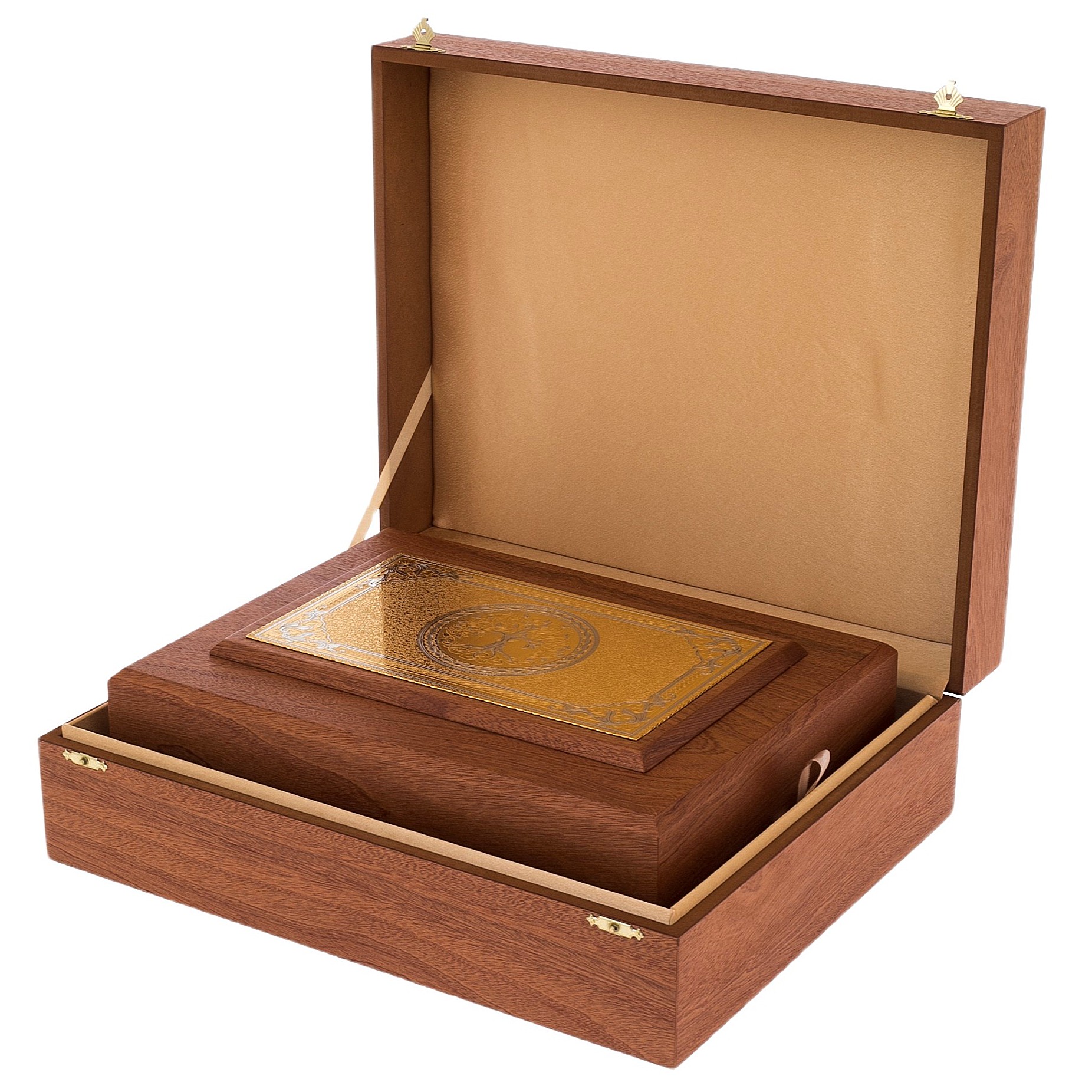 Такой дар требует особого хранения, и именно для этого книга заключена в шкатулку из натурального дерева, внутри которой скрыты потайные отсеки. Это не просто короб для защиты, а ещё один элемент символизма — место, где хранятся семейные реликвии, ценности, передаваемые только избранным. Древесина, покрытая благородной отделкой, звучит под пальцами, словно шёпот веков, а замок охраняет бесценное содержание от посторонних глаз.