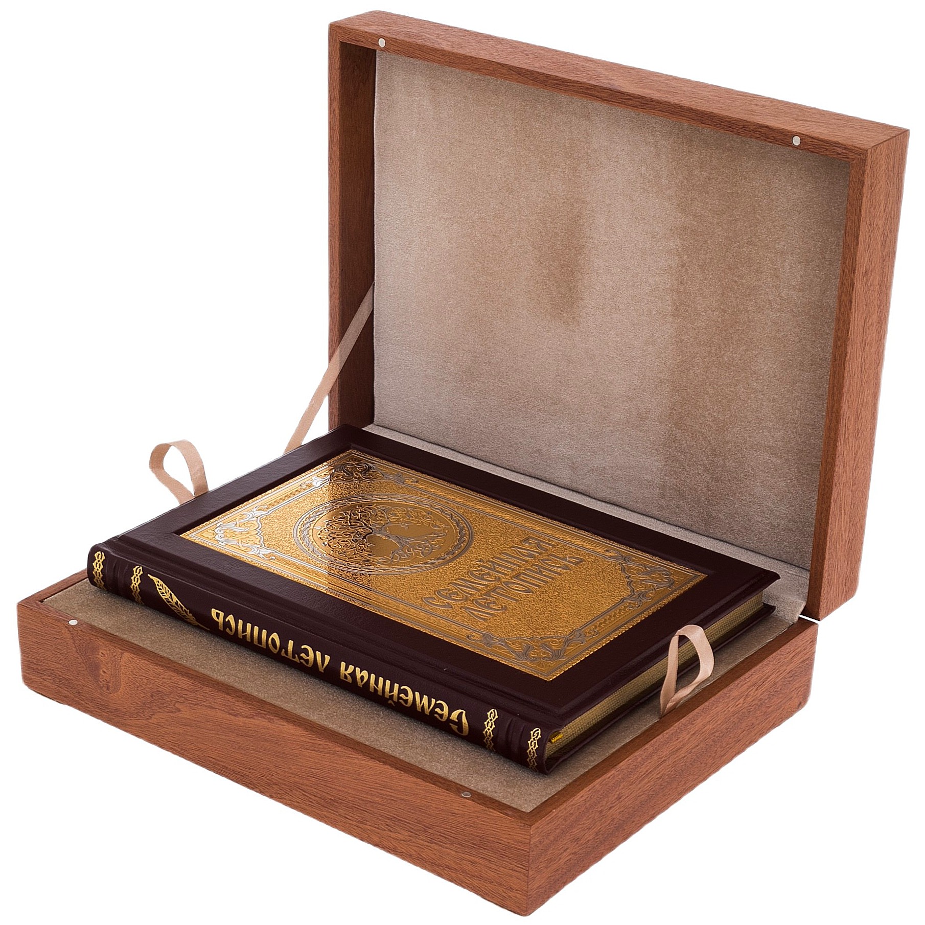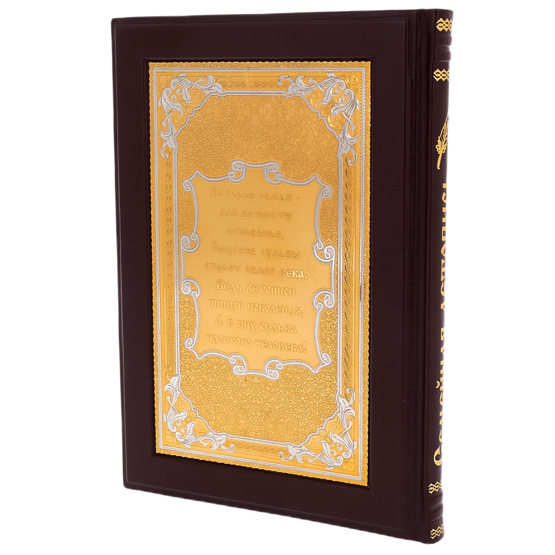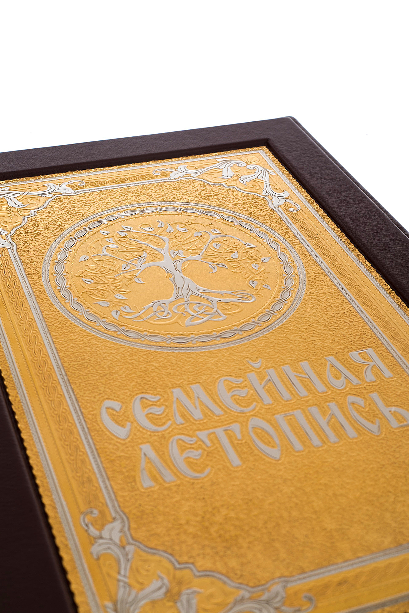 "Семейная летопись" — не просто книга, а реликвия, призванная соединить поколения, сохранив наследие рода в золоте и коже. Её страницы — как летописные свитки древних царств, несущие в себе силу предков, а переплёт — символ нерушимости семейных традиций. Обложка, украшенная золотом 999-й пробы и тончайшими гравюрами, выполненными вручную златоустовскими мастерами, напоминает драгоценный артефакт, передаваемый от отца к сыну, от деда к внуку. В центре композиции — родословное древо, символ вечности рода, его корни тянутся к предкам, а крона — к будущим потомкам.