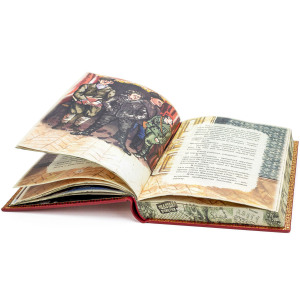 Особенности оформления:художественный ручной кожаный переплет, тиснение цветное, блинтовое и рельефное. Заказаны тематические иллюстрации. Книги отпечатаны на дизайнерской бумаге Ozon Ivory, книжные блоки сшиты вручную и отшлифованы. Обрезы книжного блока с трех сторон украшены тематическими рисунками, каптал ручного плетения..