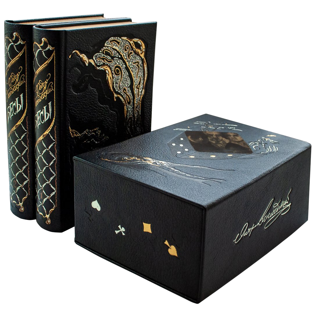 Книга подарочная в кожаном переплете "Бесы" Ф.М. Достоевский, в 2-томах, в футляре