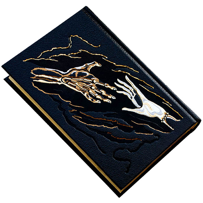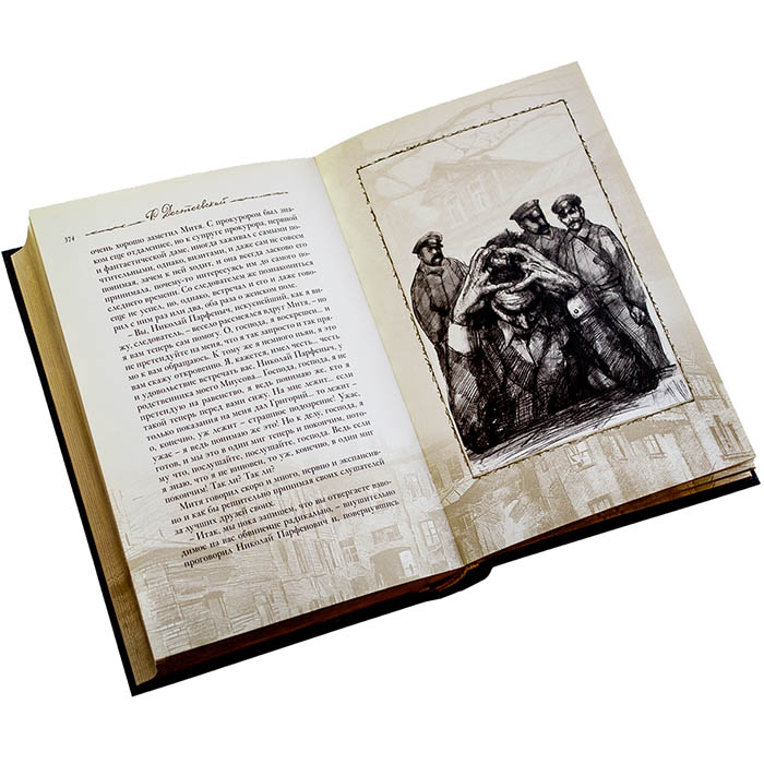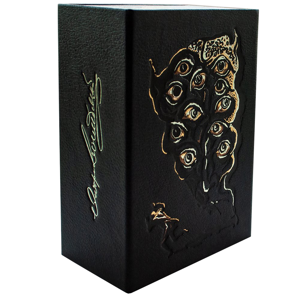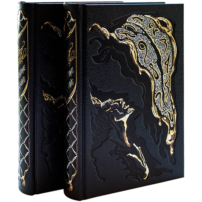 Особенности оформления: трехсторонний золотой обрез, тиснение фольгой (до 9 различных цветов) на обложке и футляре, печать в 5 цветов (4 + золото) на каждой полосе.