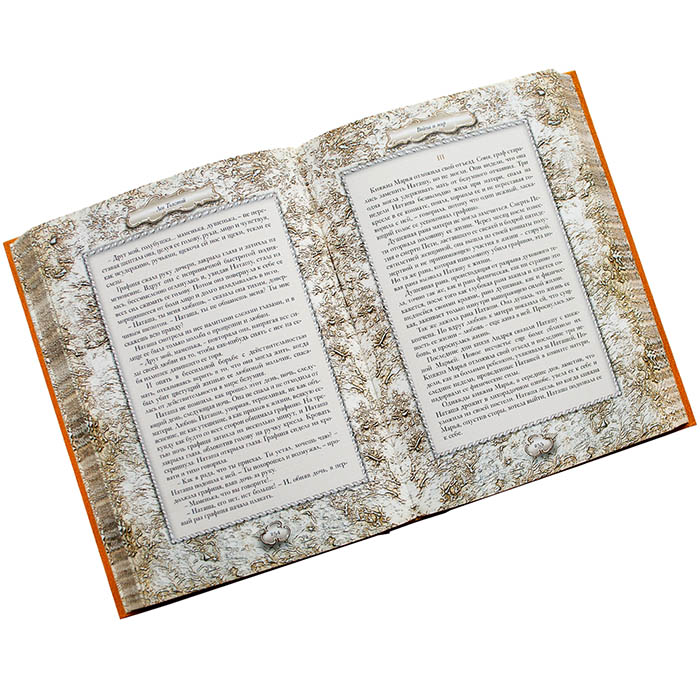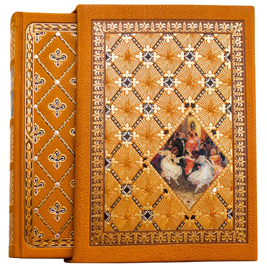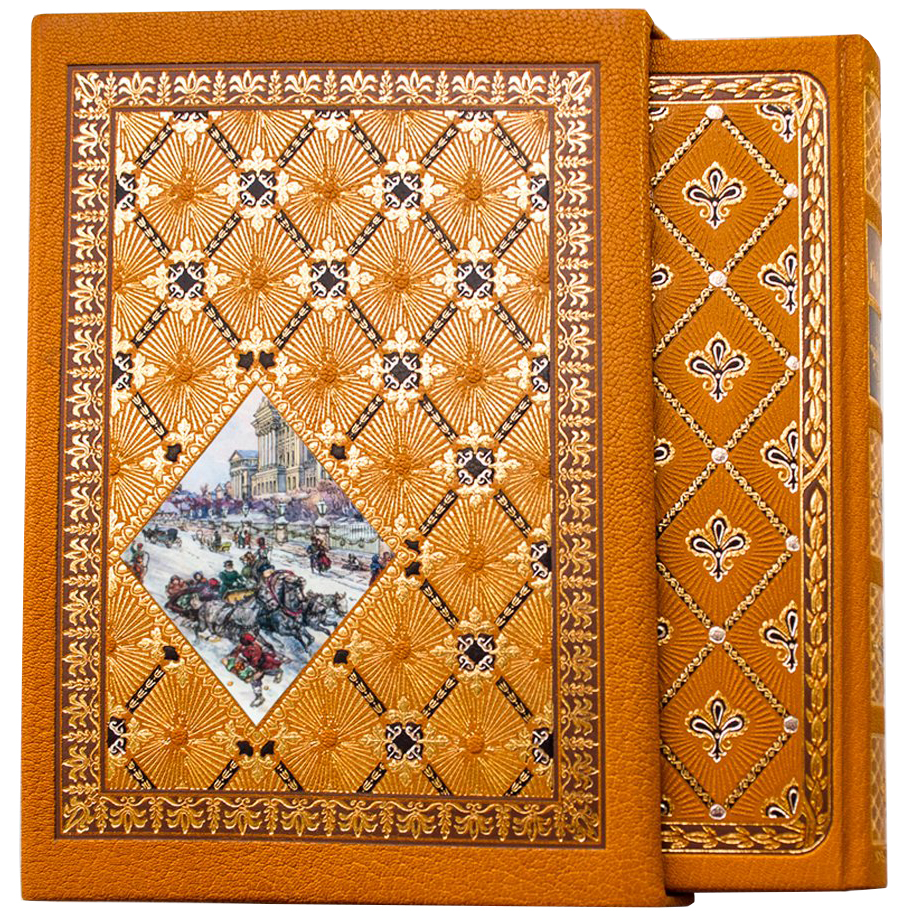 Особенности оформления: трехсторонний золотой обрез, тиснение фольгой (до 9 различных цветов) на обложке и футляре, печать в 5 цветов (4 + золото) на каждой полосе.