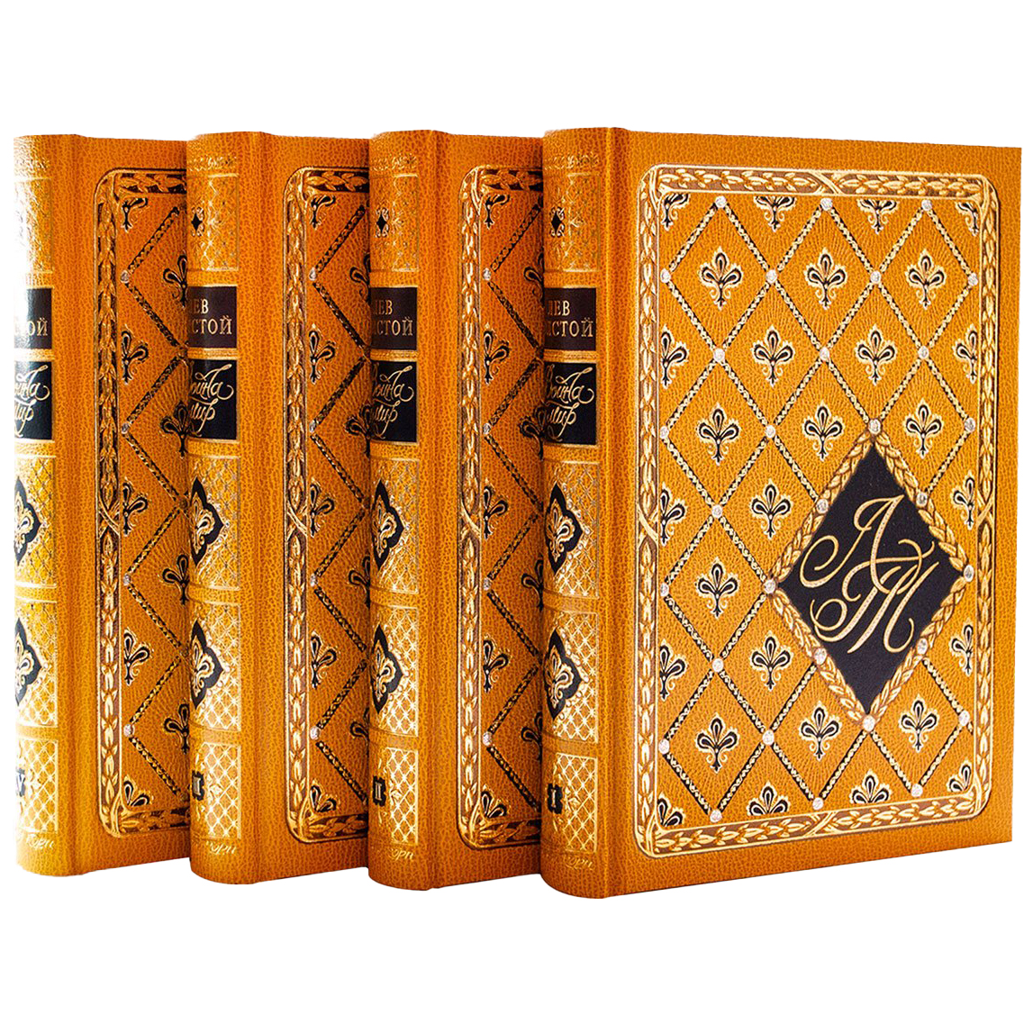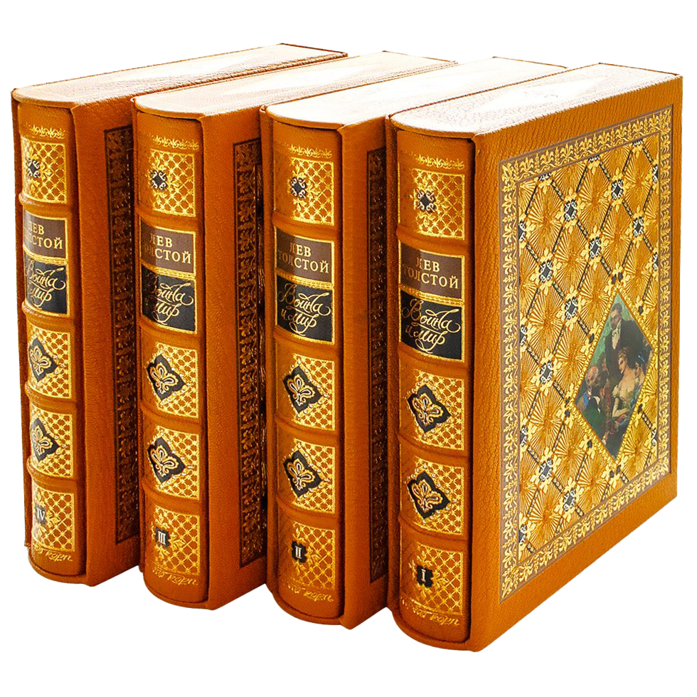 Книга подарочная в кожаном переплете "Война и Мир" Л.Н. Толстой, в 4-х томах, в футляре