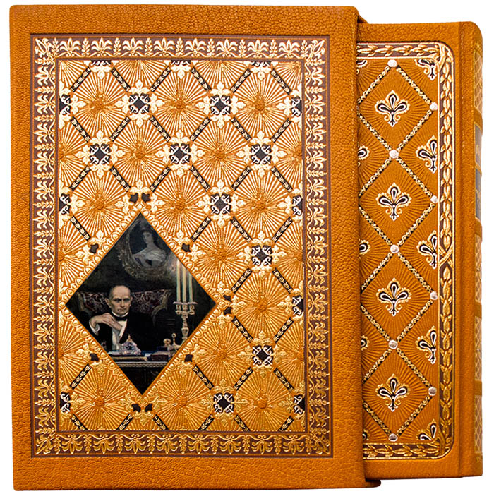 Особенности оформления: трехсторонний золотой обрез, тиснение фольгой (до 9 различных цветов) на обложке и футляре, печать в 5 цветов (4 + золото) на каждой полосе.