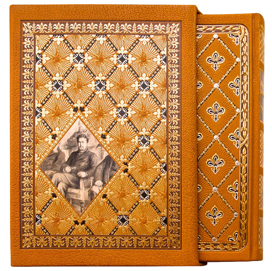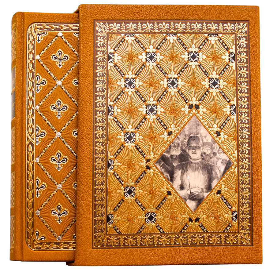 Особенности оформления: трехсторонний золотой обрез, тиснение фольгой (до 9 различных цветов) на обложке и футляре, печать в 5 цветов (4 + золото) на каждой полосе.