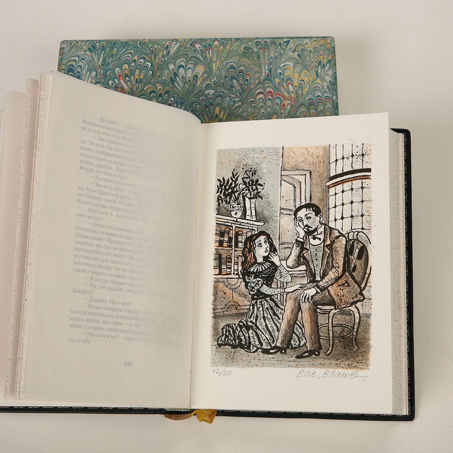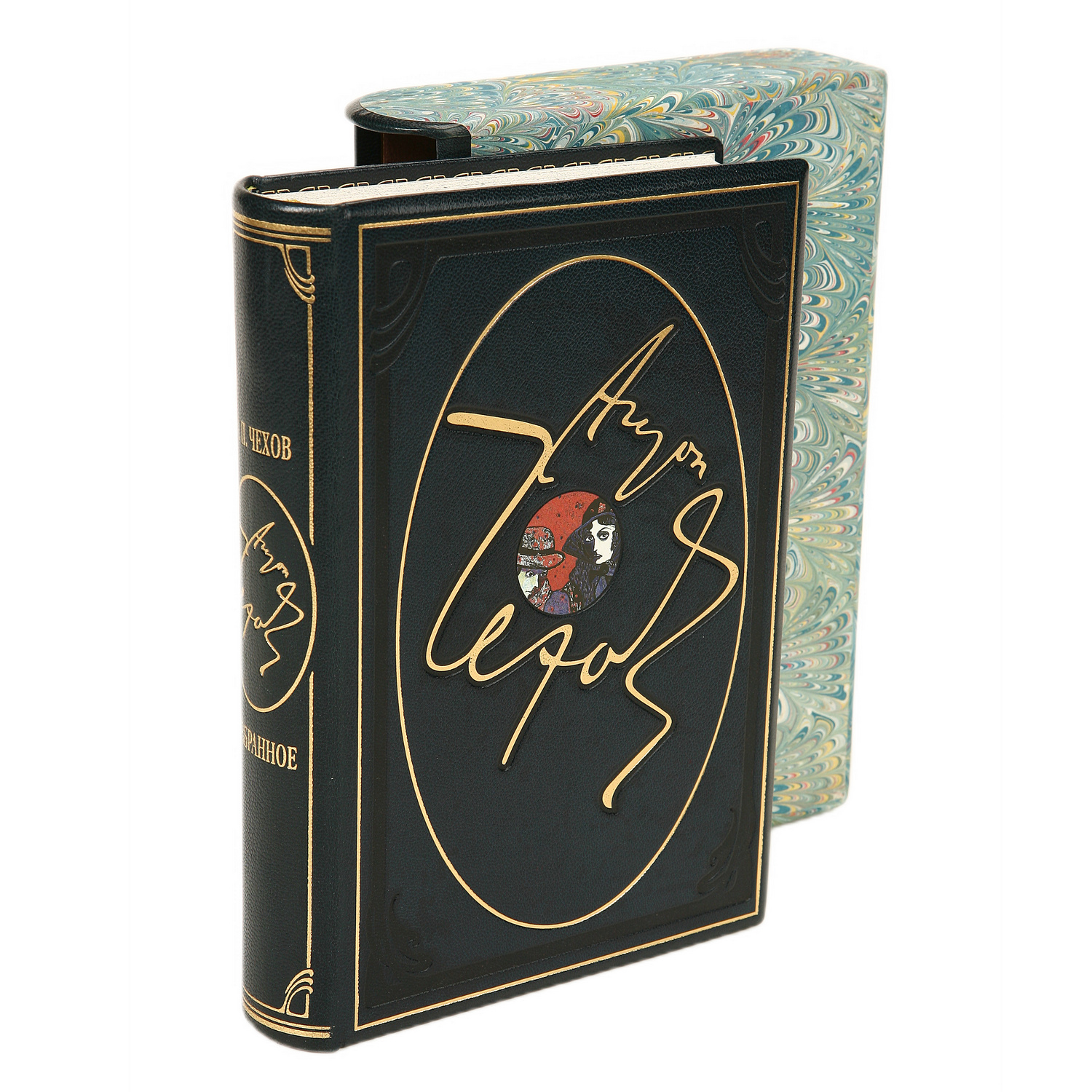 Книга в кожаном переплёте "Избранное" А.Чехов, иллюстрации Василия Власова