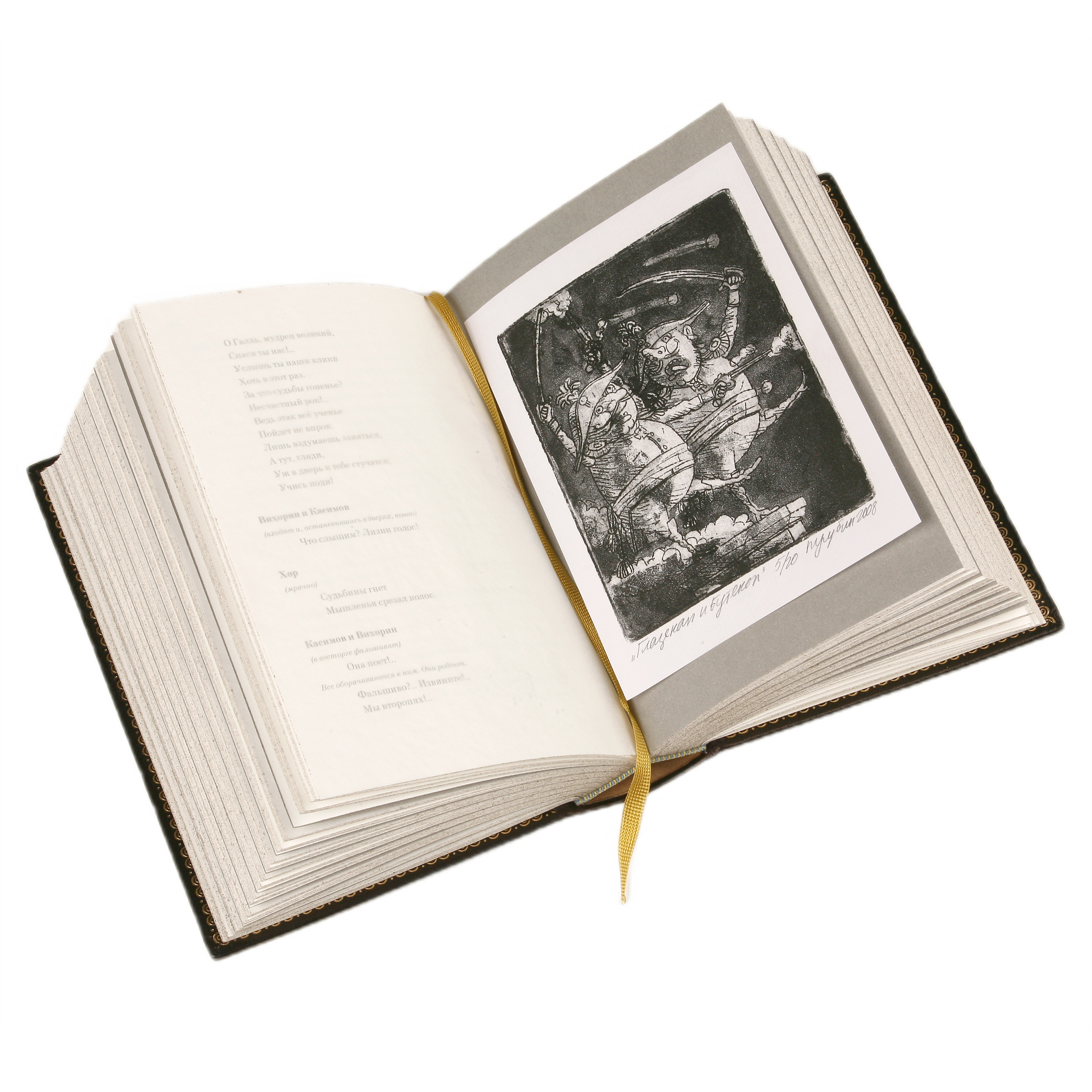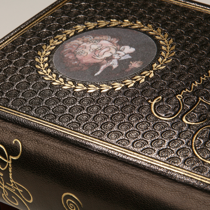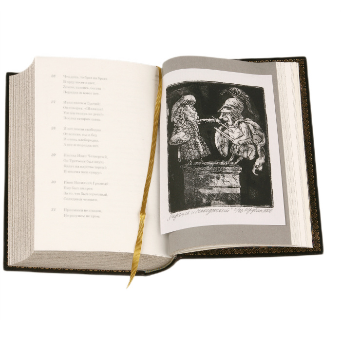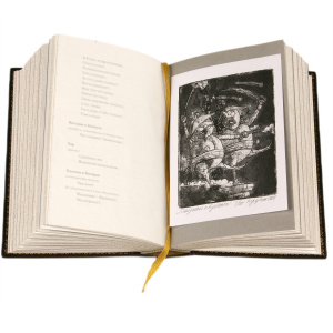 Книга в кожаном переплёте "Сочинения Козьмы Пруткова" офорты Дмитрия Трубина
