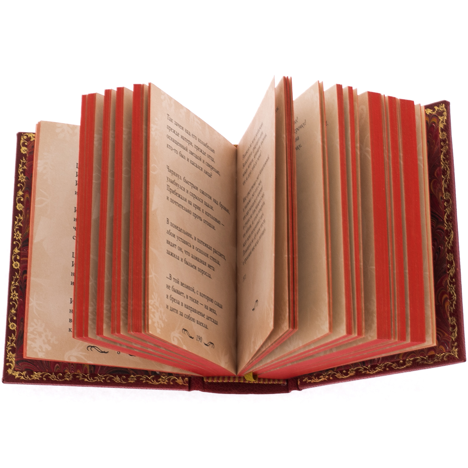 Исполнение:в подарочном переплете из натуральной шагреневой кожи со вставками и художественным тиснением, в т. ч. ручным. Форзац из мраморной бумаги, обрезы окрашены вручную.