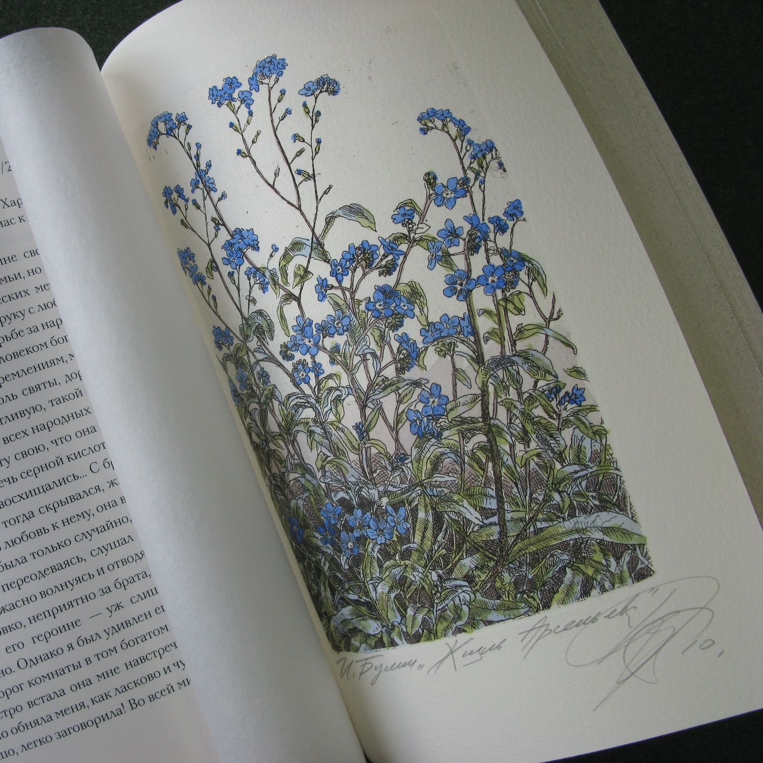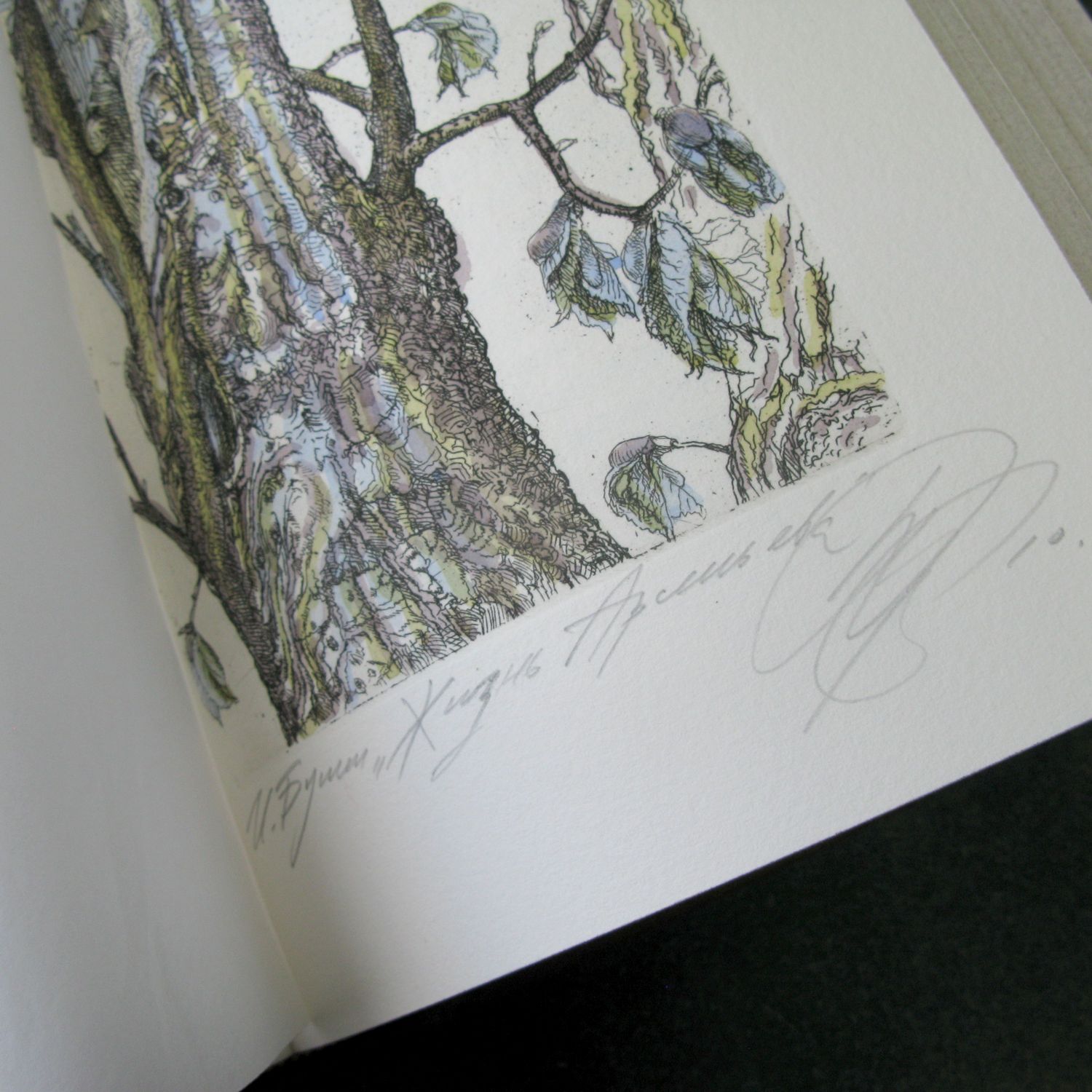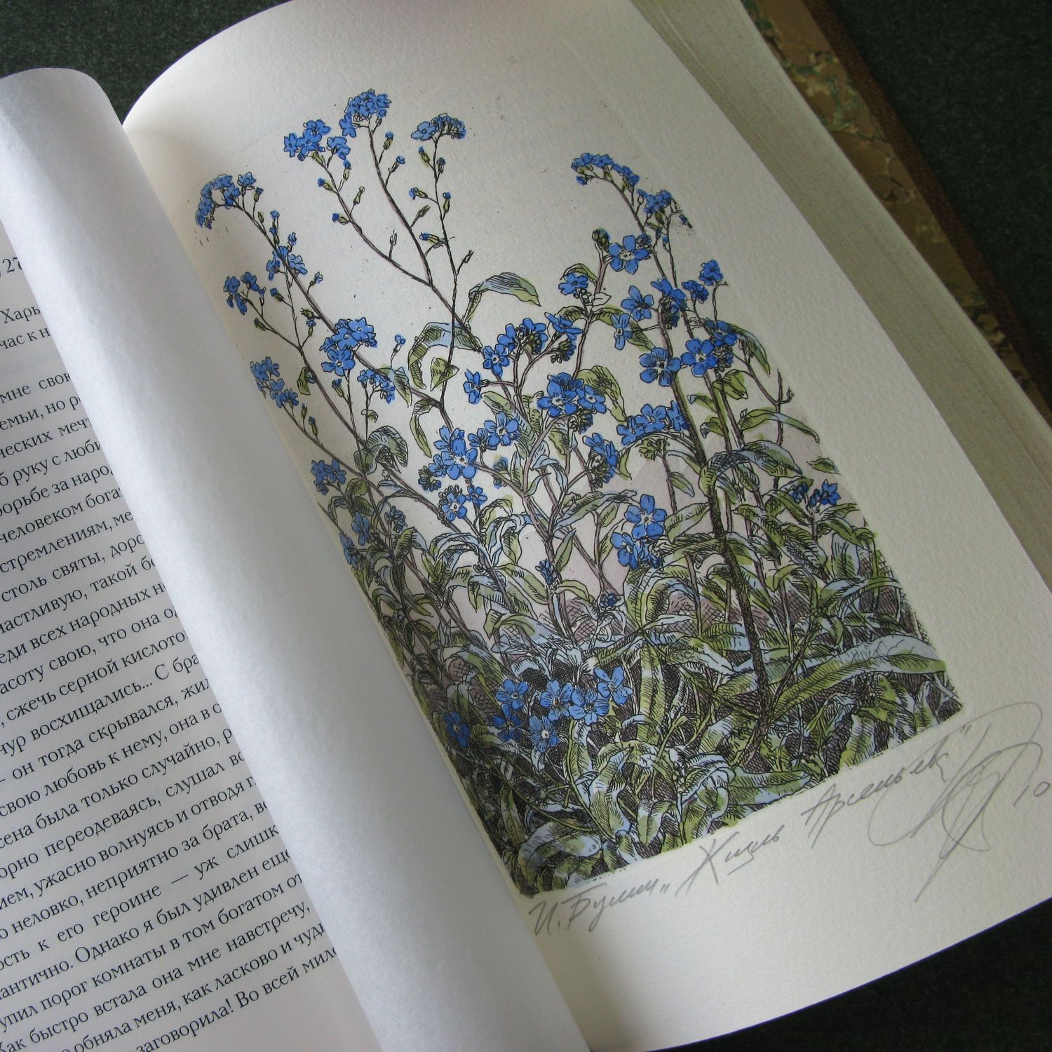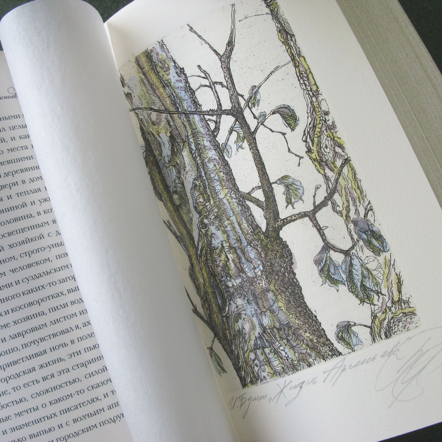Книга в кожаном переплёте "Жизнь Арсеньева" раскрашенные вручную офорты Алёны Дергилевой, И.Бунин