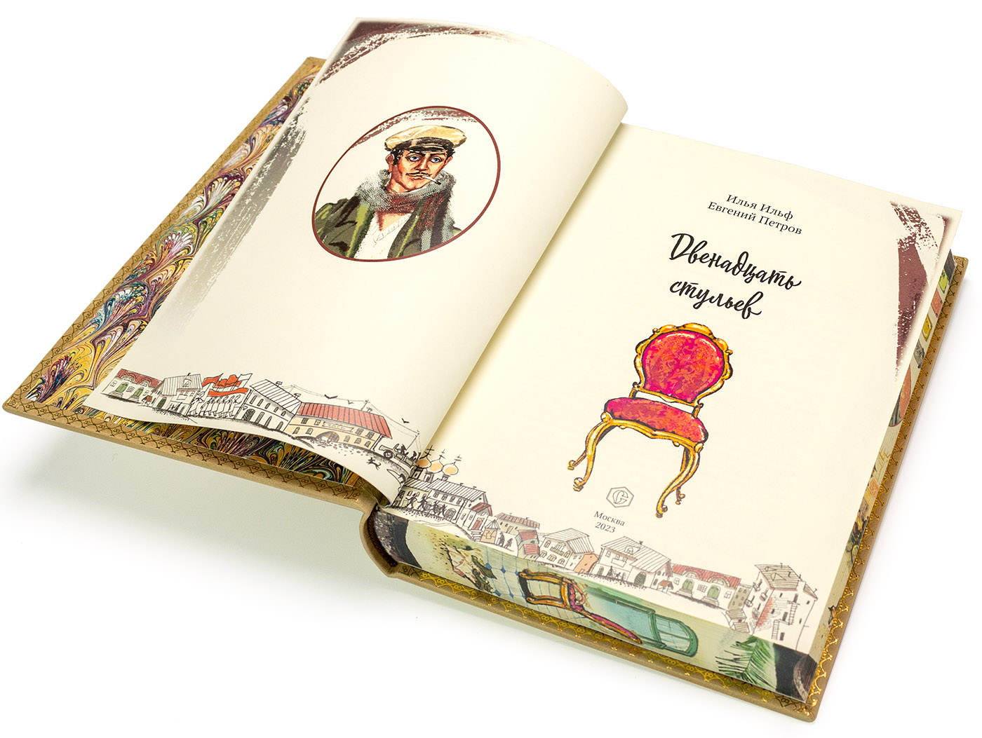 Подарочная книга в кожаном переплете "Двенадцать стульев", И. Ильф и Е. Петров