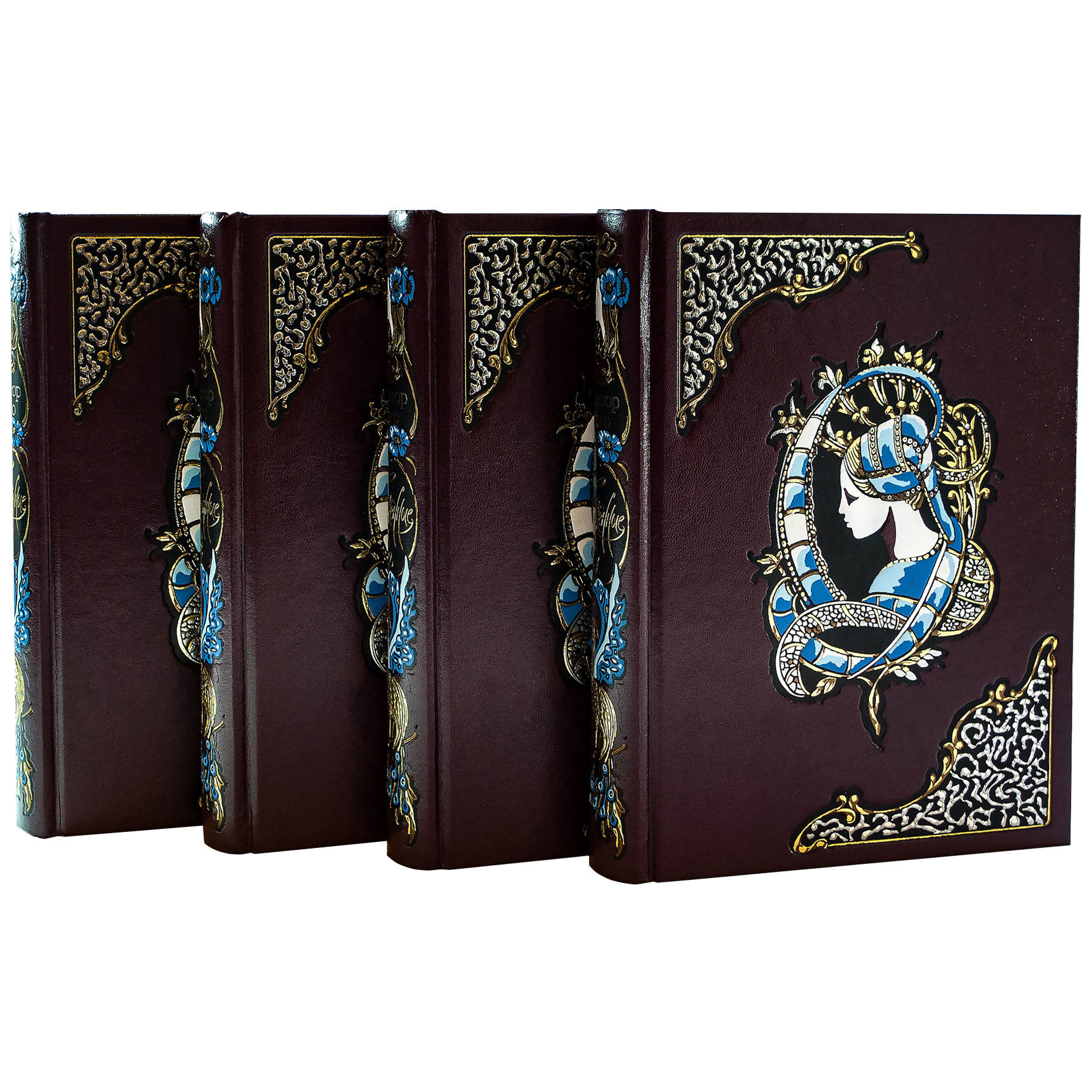 Подарочные книги "Тысяча и одна ночь" перевод с арабского М.А. Салье, в 8 томахПодарочные книги "Тысяча и одна ночь" перевод с арабского М.А. Салье, в 8 томахЭксклюзивные книги в кожаном переплете – это нечто большее, чем просто книги. Обложка из натуральной телячьей кожи производства Италии, шкура пони, драгоценные камни, объемные узоры, роскошный подарочный футляр превращают эти редкие издания в произведения искусства. Книжные обложки выполнены вручную, и каждый сантиметр кожи является результатом кропотливой работы талантливых мастеров. Подарочные книги облагородят интерьер гостиной и кабинета, пополнят коллекцию библиофила и станут семейной реликвией. Такие книги не стареют, и с каждым годом ценятся все больше, как антикварные вещи, над которыми не властно время...