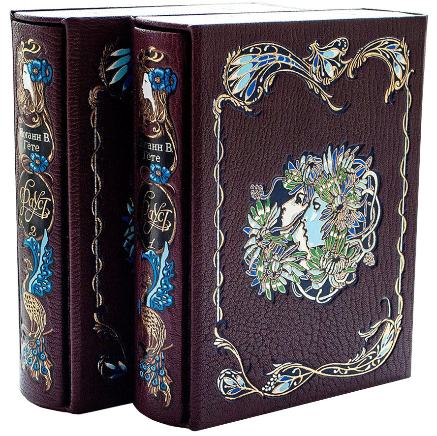 Книга подарочная в кожаном переплете "Фауст" И.Гете, в 2-х томах, в футляре