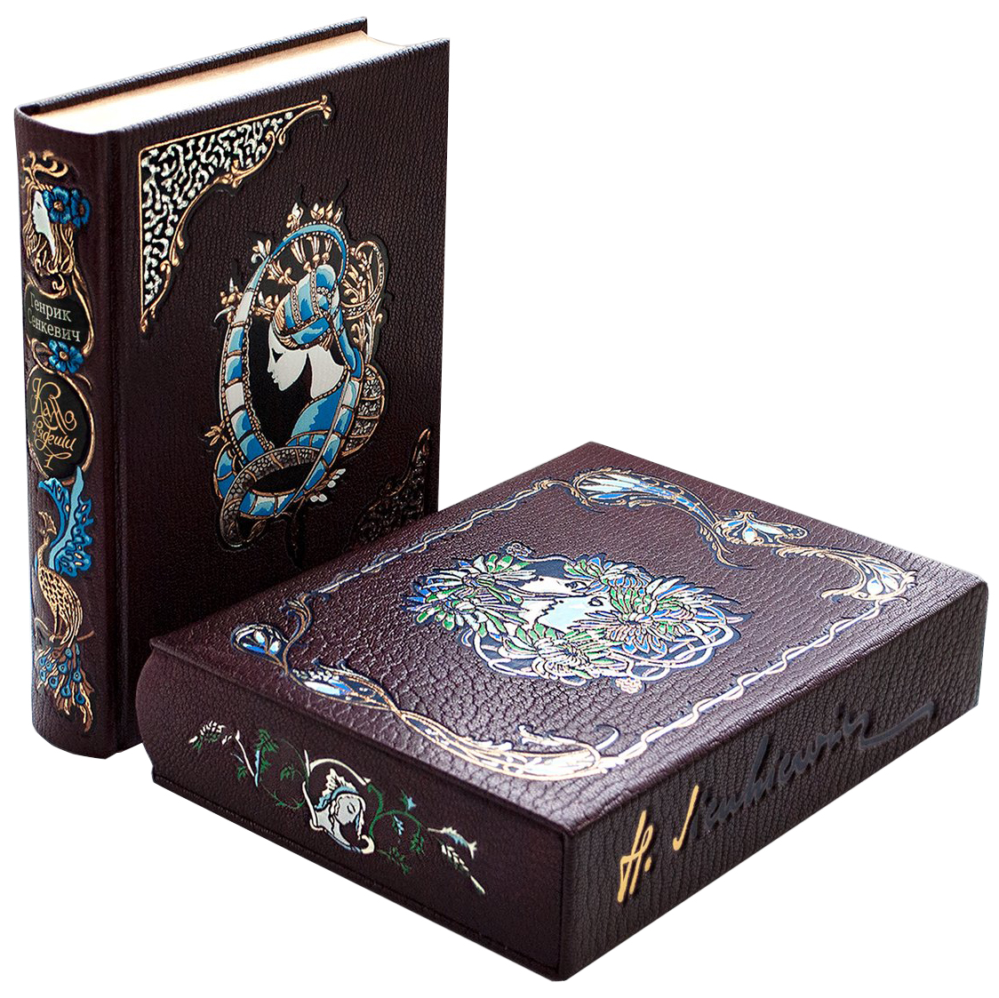 Книга подарочная в кожаном переплете "Камо Грядеши" Г. Сенкевич, в 2-х томах, в футляре