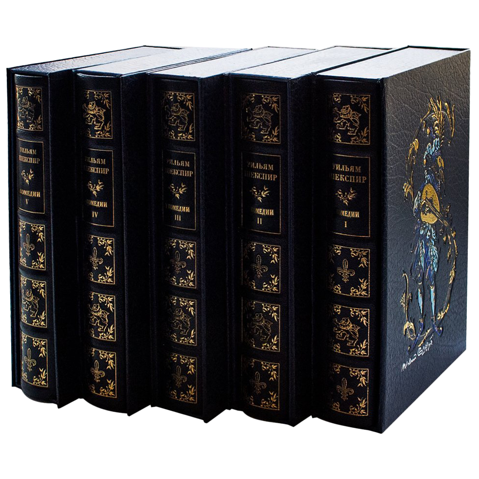 Книга подарочная в кожаном переплете "Комедии" У.Шекспир, в 5-ти томах, в футляре
