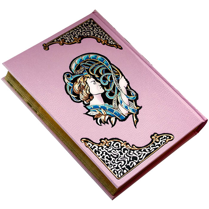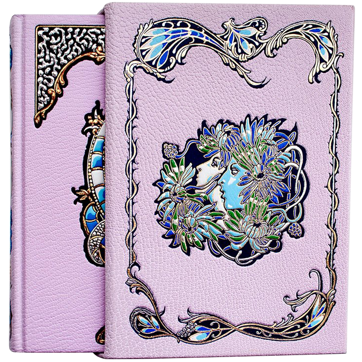 Особенности оформления: трехсторонний золотой обрез, тиснение фольгой (до 9 различных цветов) на обложке и футляре, печать в 5 цветов (4 + золото) на каждой полосе.
