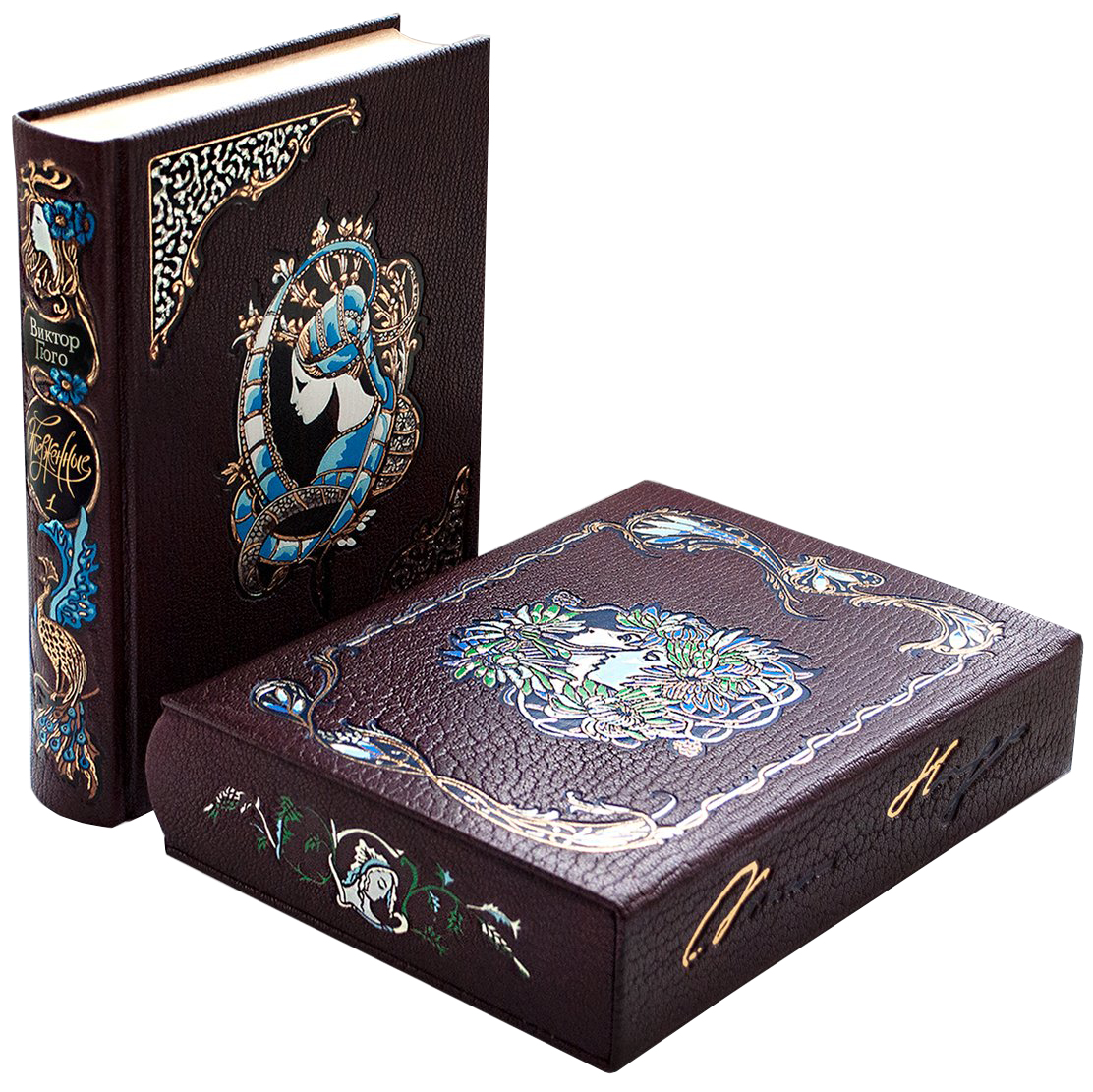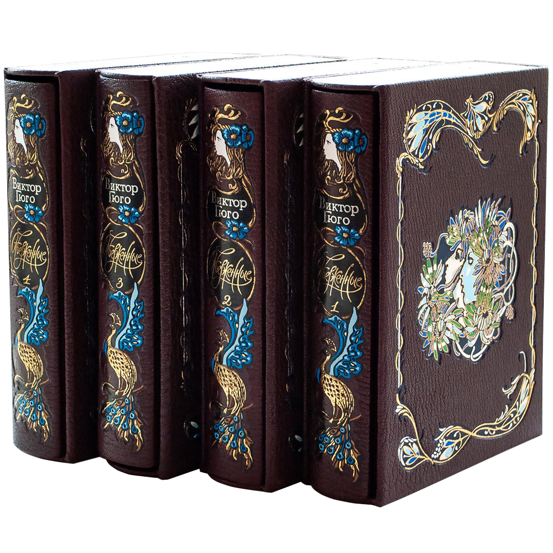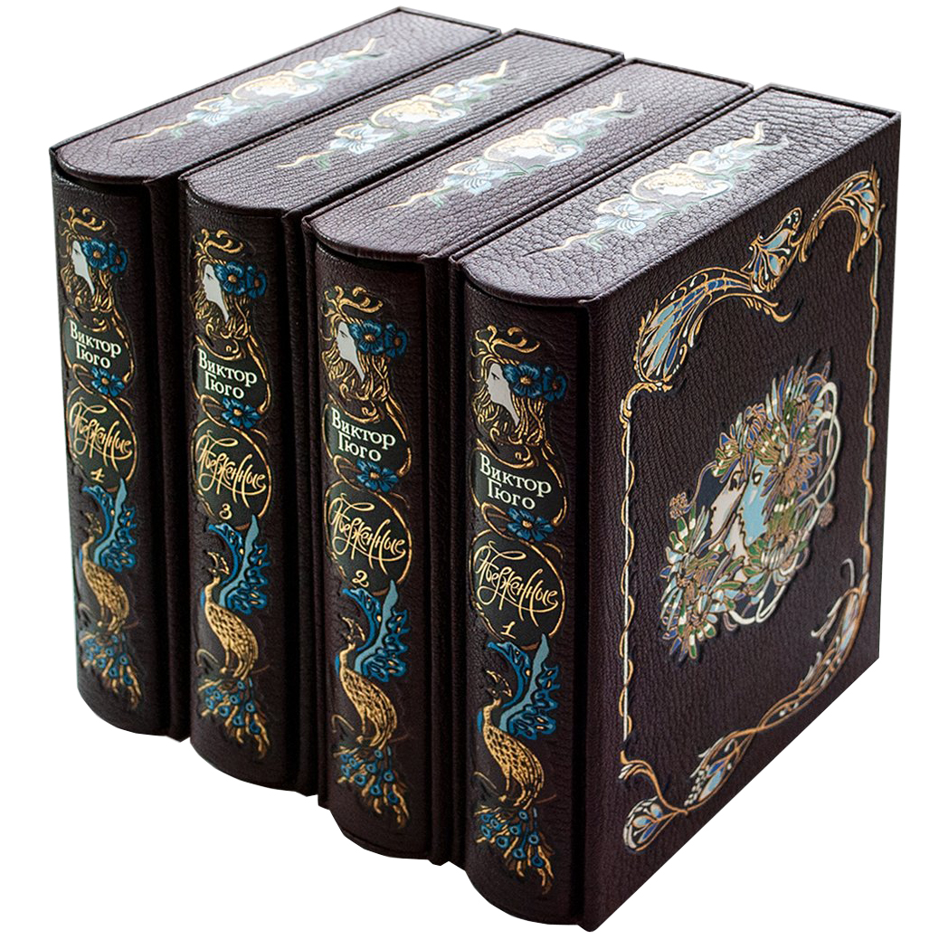 Книга подарочная в кожаном переплете "Отверженные" Виктор Гюго, в 4-х томах, в футляре