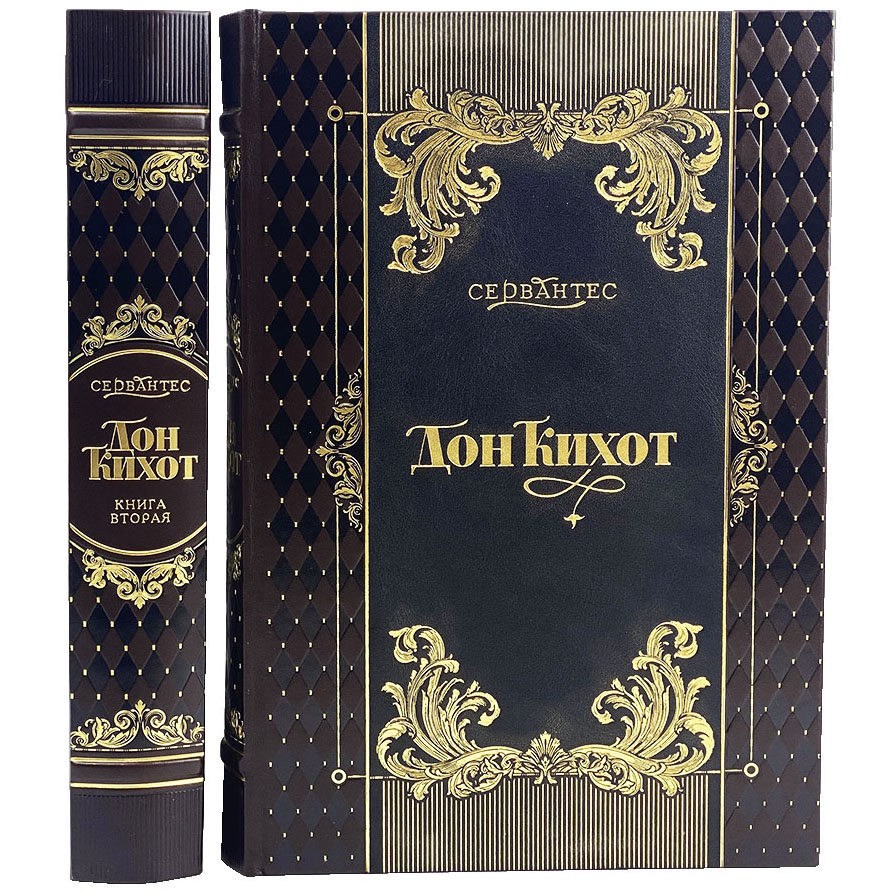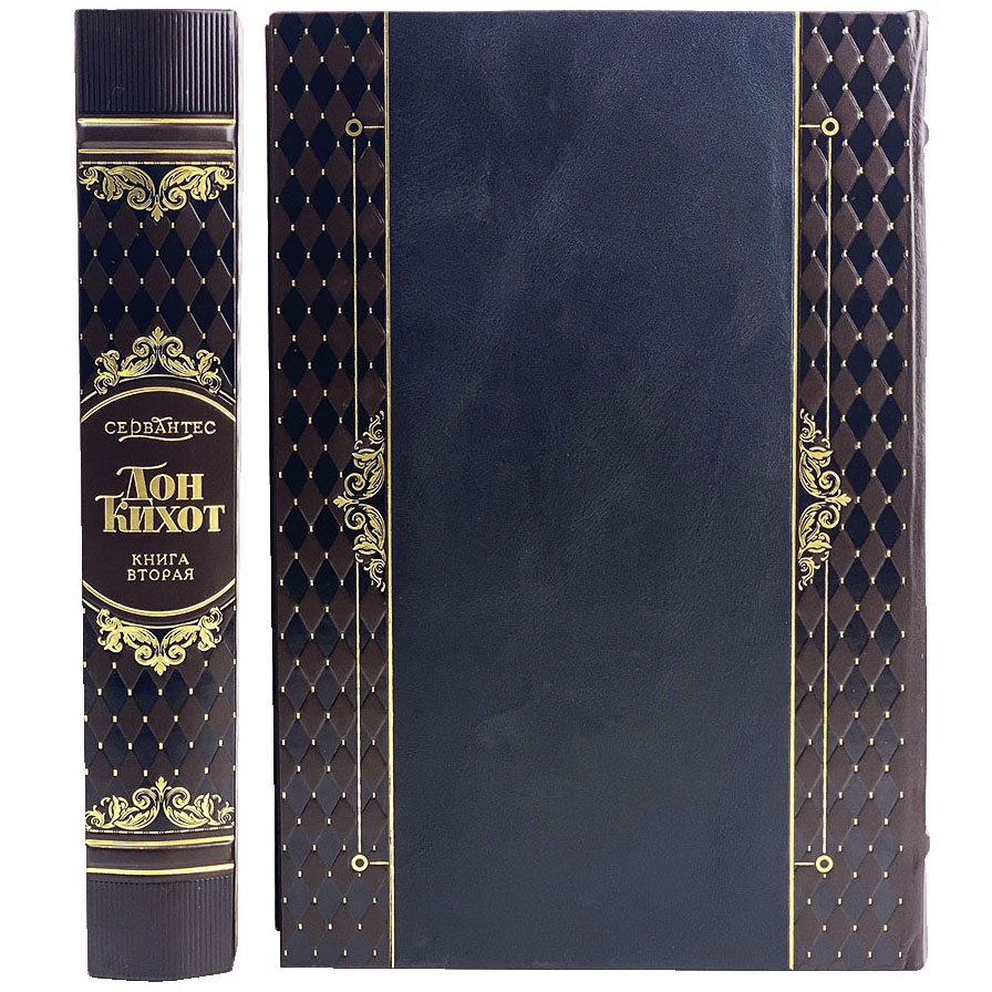 Книга в кожаном переплете "Дон Кихот" Сервантес Мигель де Сааведра, в 2-х томах