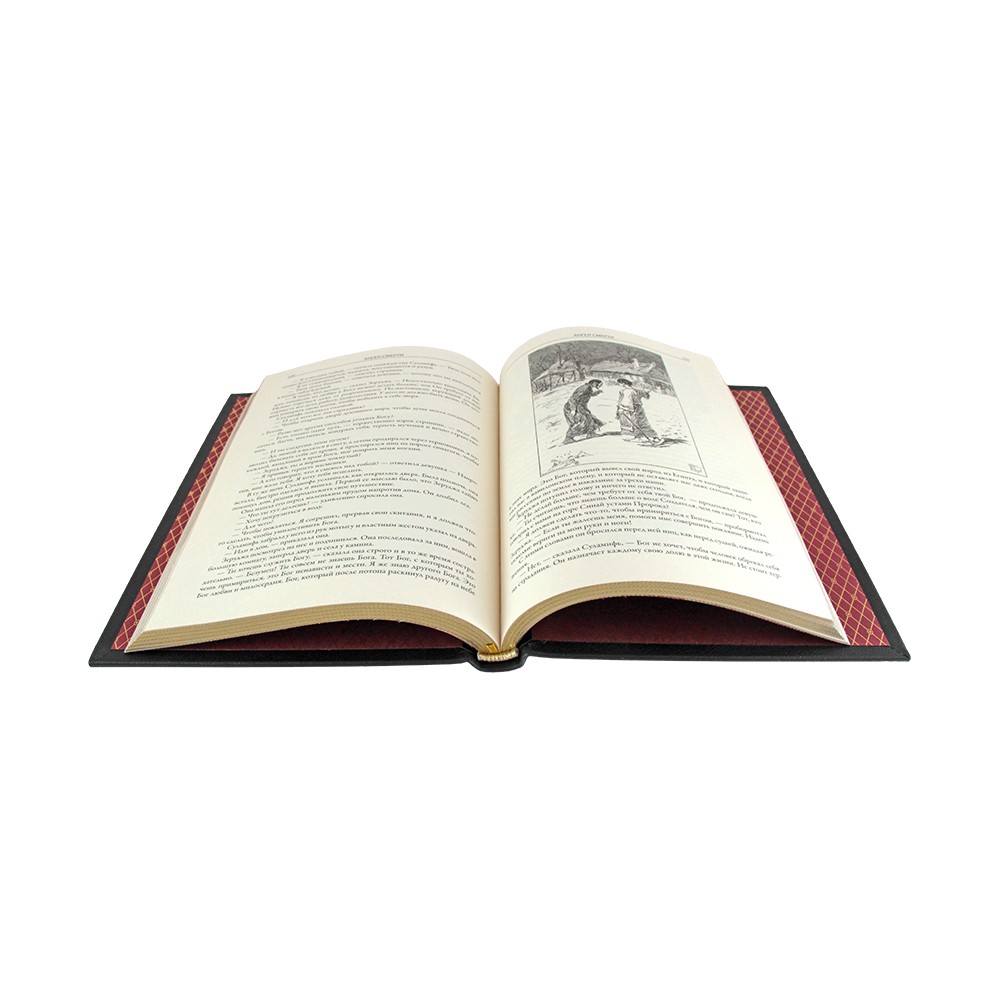 Исполнение: Классический европейский переплёт ручной работы из натуральной кожи. Форзац из дизайнерской бумаги Malmero с тиснением орнамента золотой фольгой. 6 бинтов на корешке, ручной обработки. Каптал золотой из натуральной кожи. Обрез блока – золото с торшонированием. Тиснение блинтовое, золотой и цветной фольгой. Ляссе.