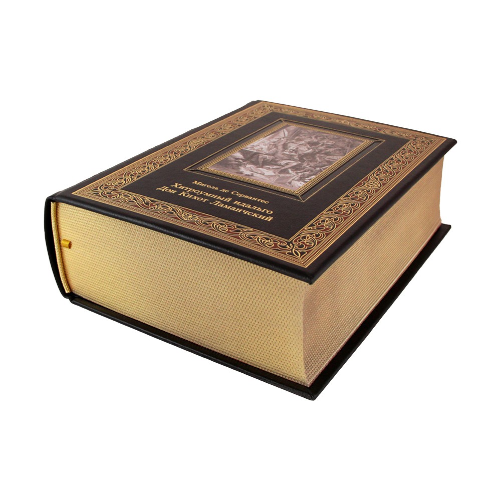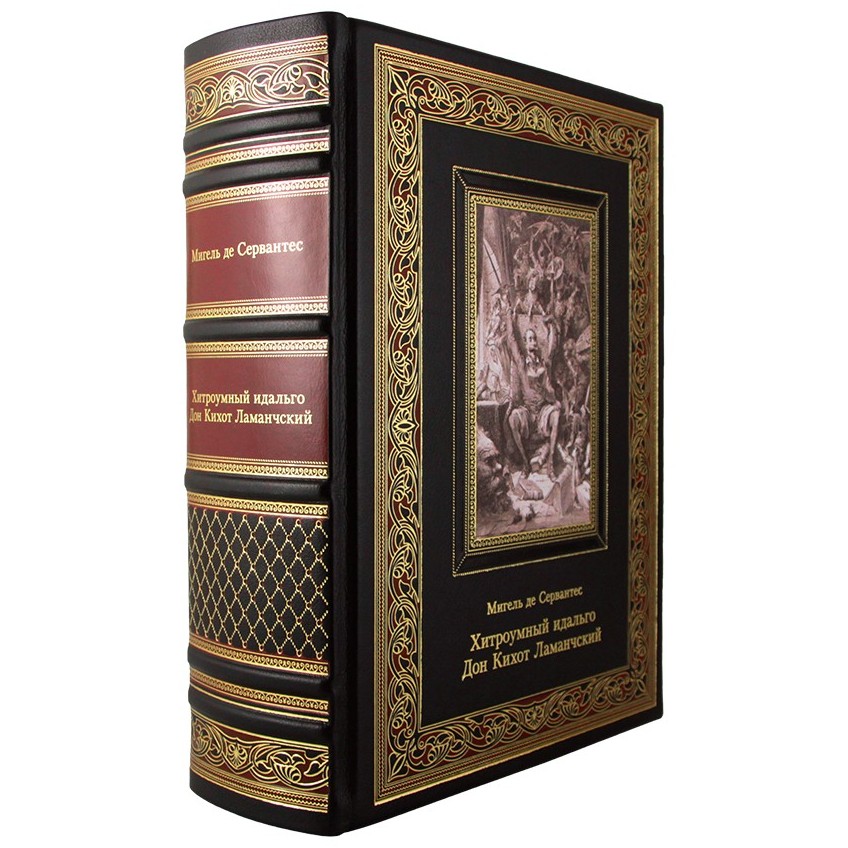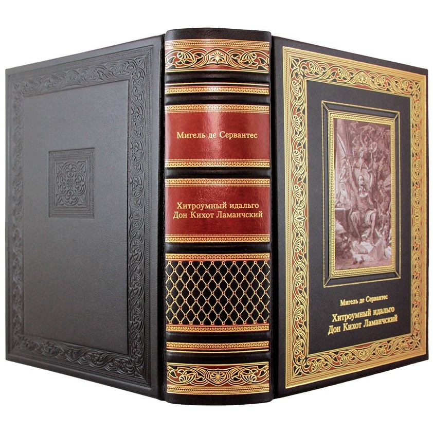 Книга в кожаном переплете "Хитроумный идальго Дон Кихот Ламанчский" Сервантес М.