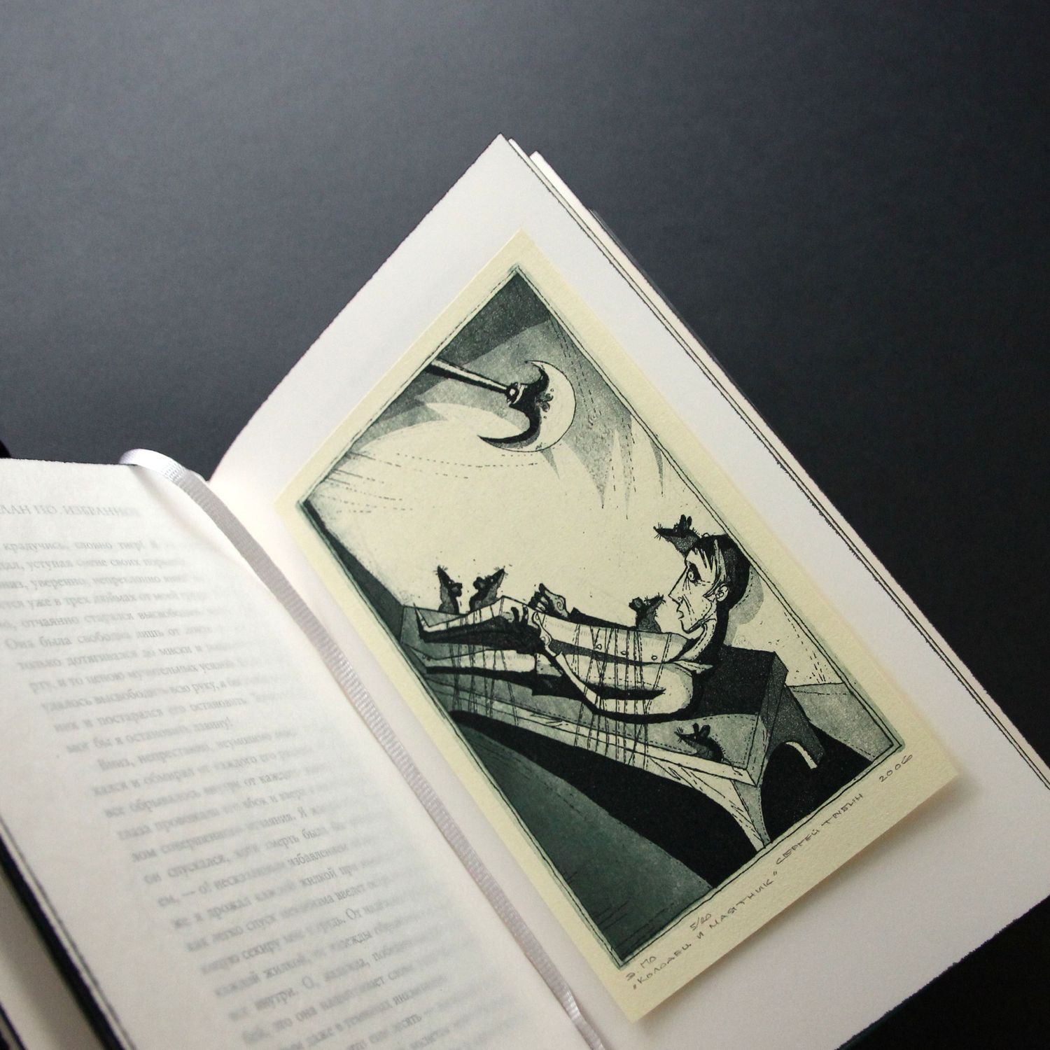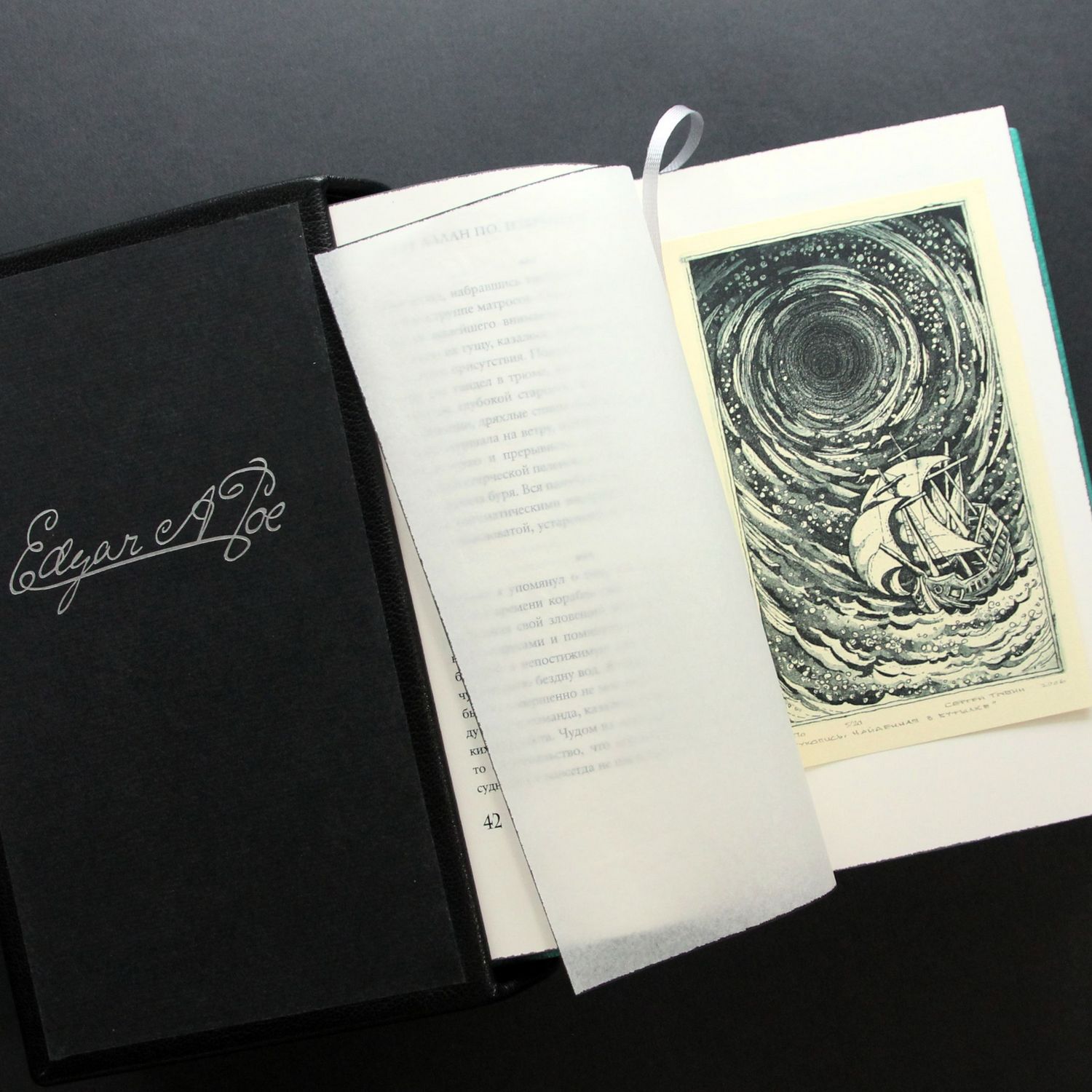 Особенности оформления:шелковые каптал и ляссе, форзацы из дизайнерской бумаги, переплет украшен тиснением черной и серебряной фольгой.