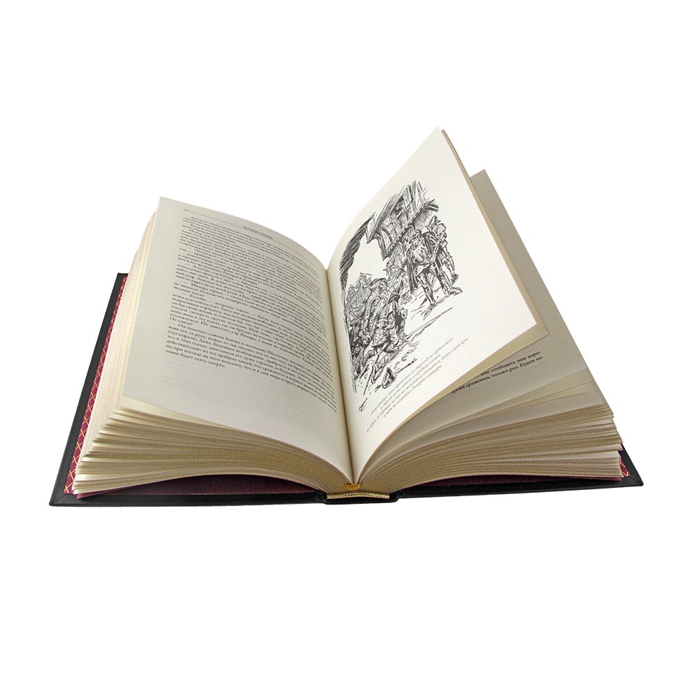 Исполнение: Классический европейский переплёт ручной работы из натуральной кожи. Форзац из дизайнерской бумаги Malmero с тиснением орнамента золотой фольгой. 6 бинтов на корешке, ручной обработки. Каптал золотой из натуральной кожи. Обрез блока — золото с торшонированием. Тиснение блинтовое, золотой и цветной фольгой. Ляссе.