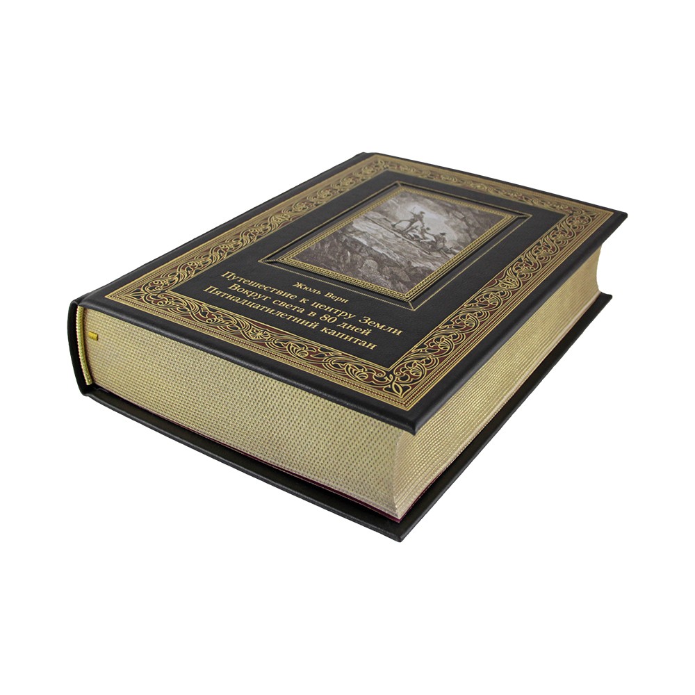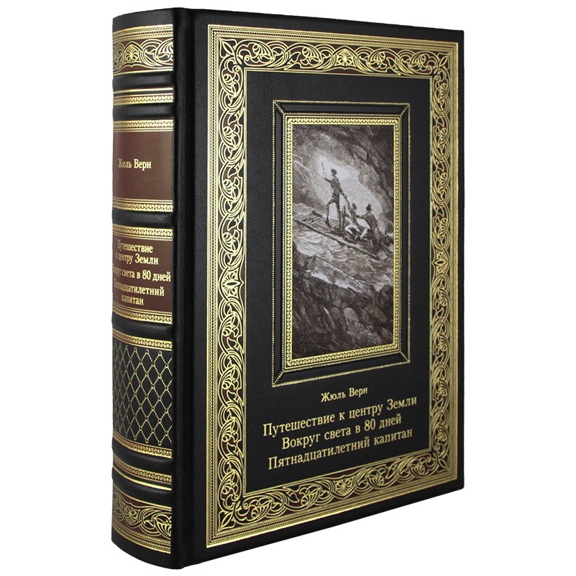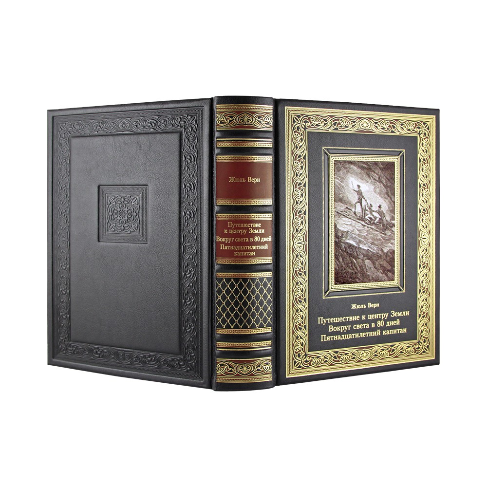 Книга в кожаном переплете "Путешествие к центру Земли. Вокруг света в 80 дней. Пятнадцатилетний капитан" Жюль Верн