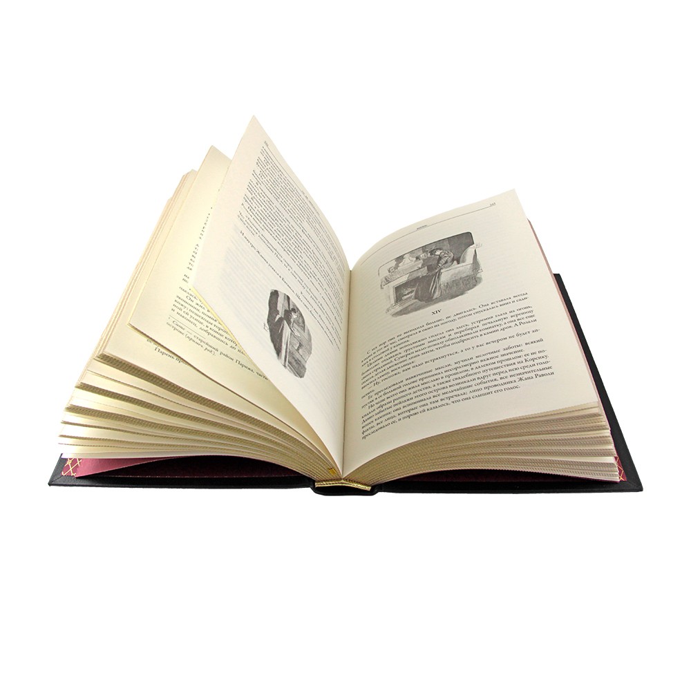 Исполнение: Классический европейский переплёт ручной работы из натуральной кожи. Форзац из дизайнерской бумаги Malmero с тиснением орнамента золотой фольгой. 6 бинтов на корешке, ручной обработки. Каптал золотой из натуральной кожи. Обрез блока — золото с торшонированием. Тиснение блинтовое, золотой и цветной фольгой. Ляссе.